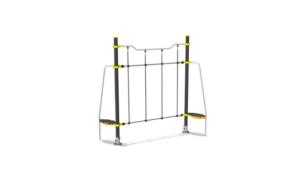 Klimparcours met stangen en balanceernet.
