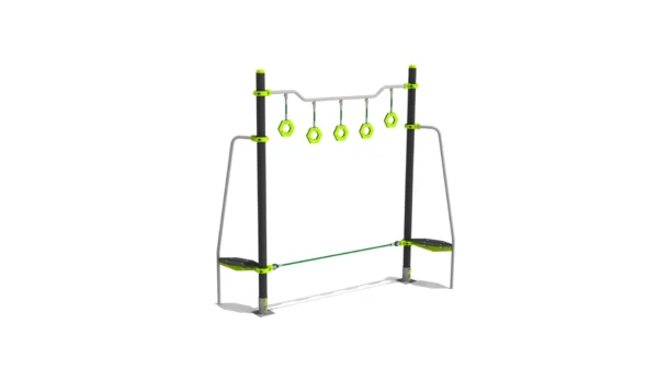 Slackline met handgrepen en stangen.
