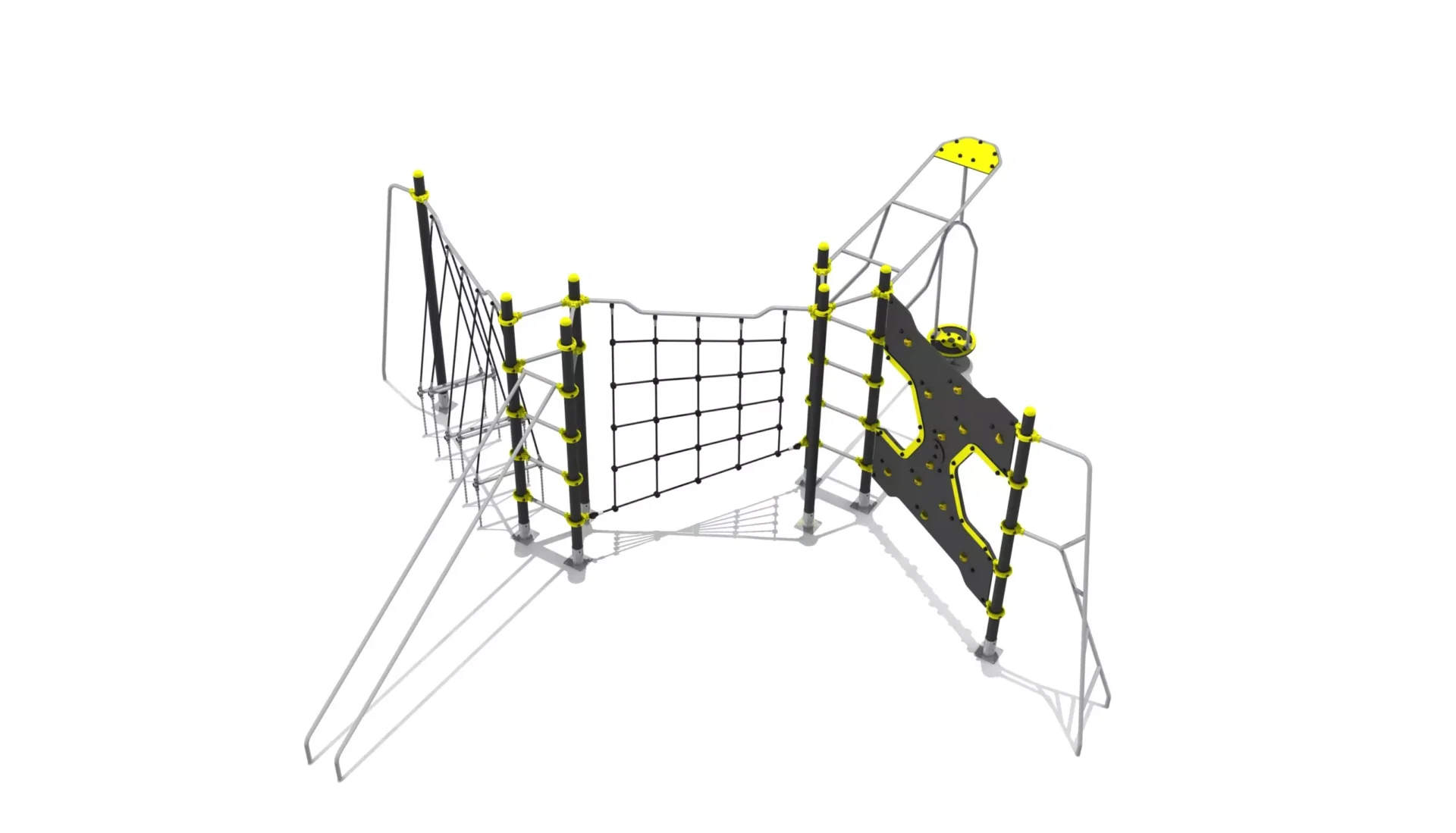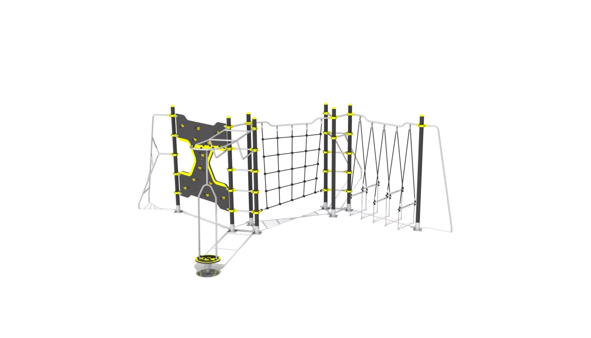 klimcombinatie met verschillende netstructuren, draaimolen, klimmuur, ladder