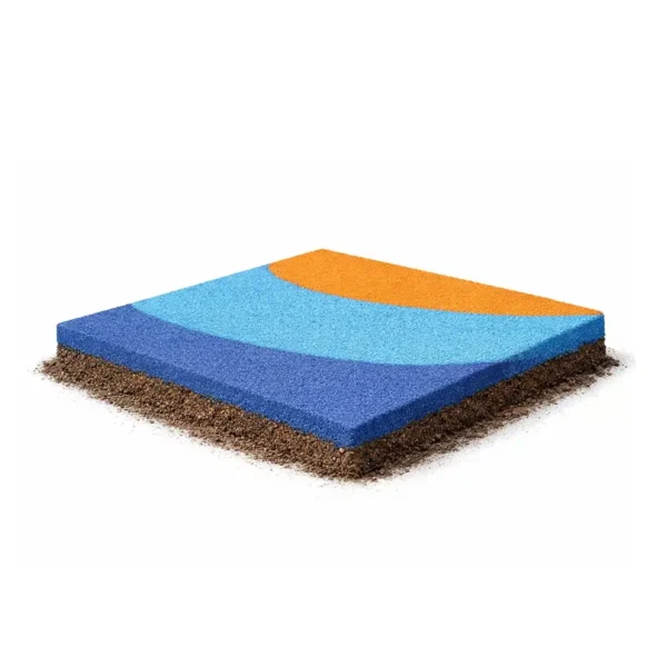 De EPDM toplaag staat bekend om zijn duurzaamheid, kleurvastheid en uitstekende weerbestendigheid. In combinatie met een schokabsorberende onderlaag kan de insituvloer worden afgestemd op de vereiste valhoogte, waardoor de vloer voldoet aan de geldende veiligheidsnormen voor valdemping.