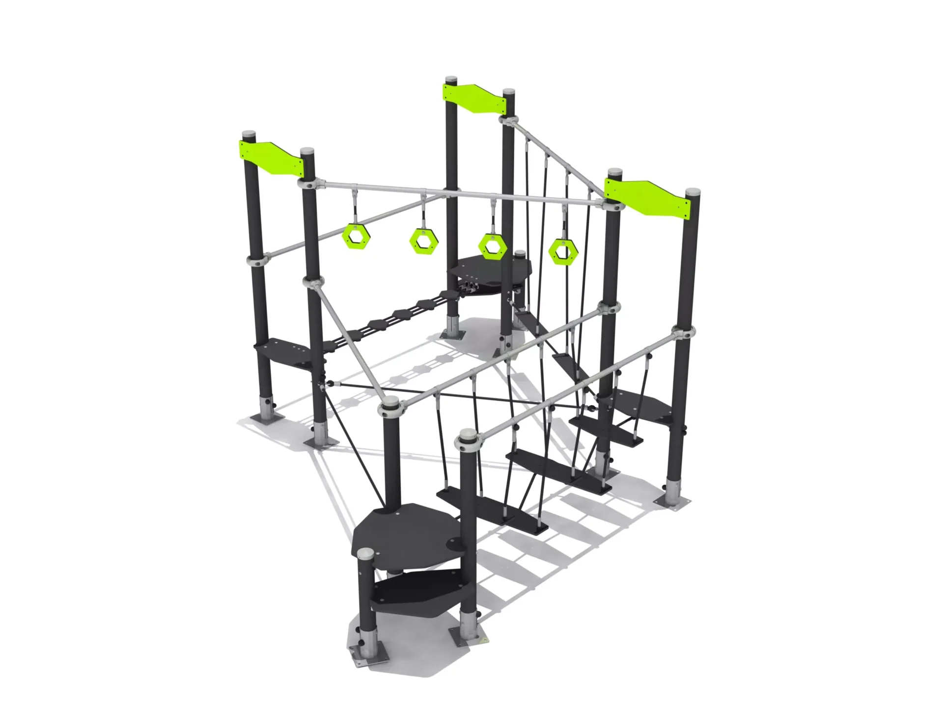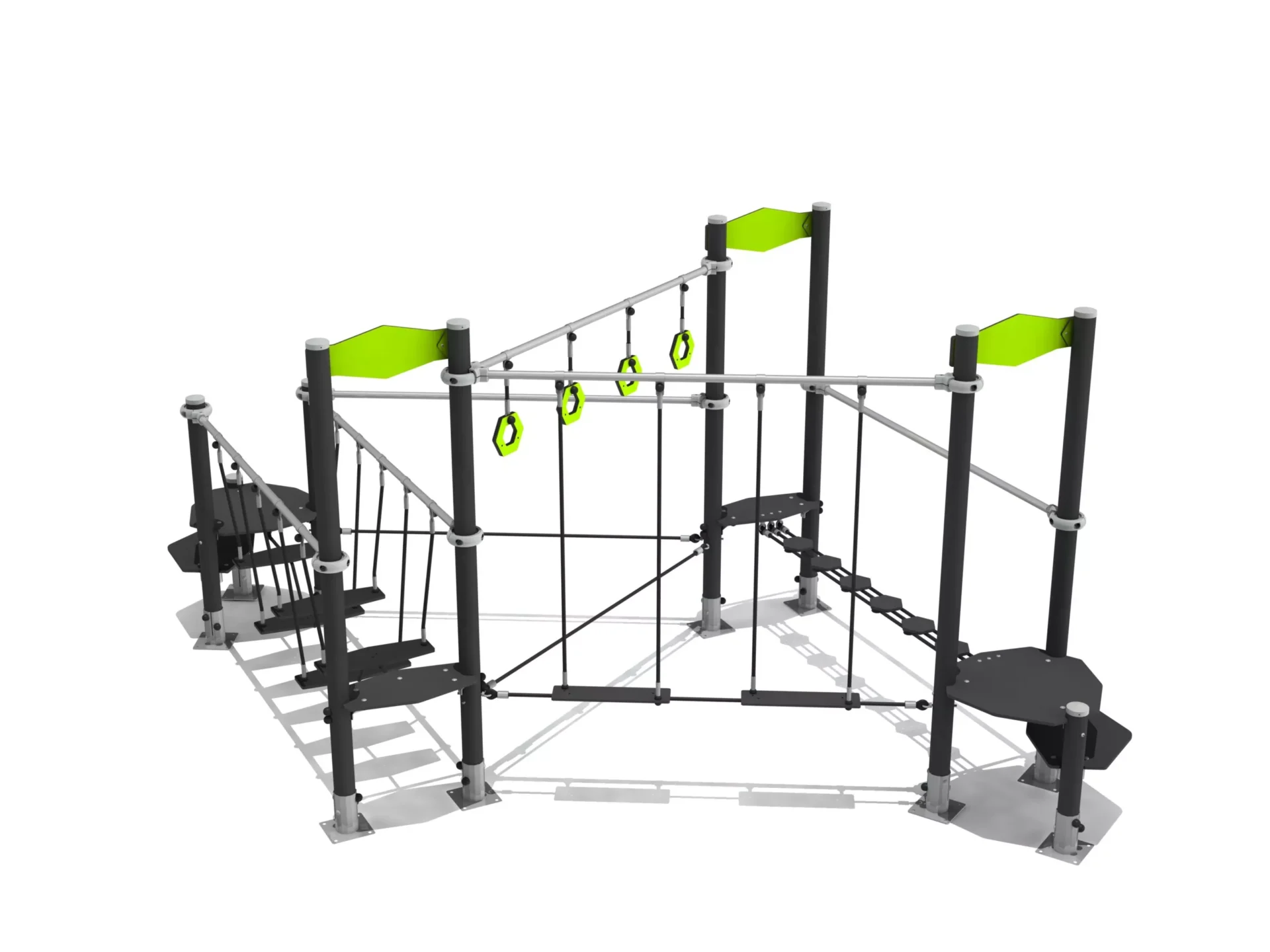 balanceerobstakel met ringen, touwen en touwbruggen.