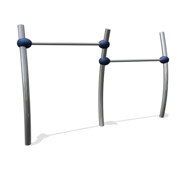 De Duikel Duo is een elegant en robuust speeltoestel dat uitnodigt tot beweging, uitdaging en plezier. Met zijn strakke ontwerp en duurzame RVS-constructie is dit toestel een tijdloze toevoeging aan elke speelplek.