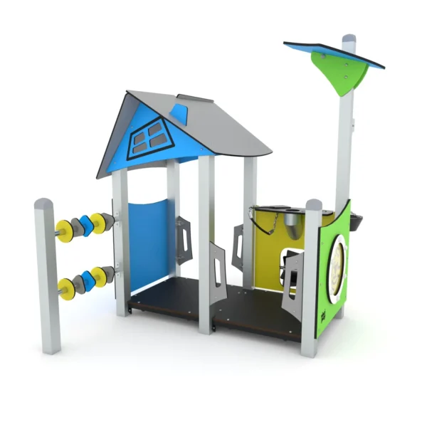 Speelhuis uitgevoerd met platform met verschillende toegevoegde speelwaarde. Gegarandeerd speelplezier voor de kleintjes.