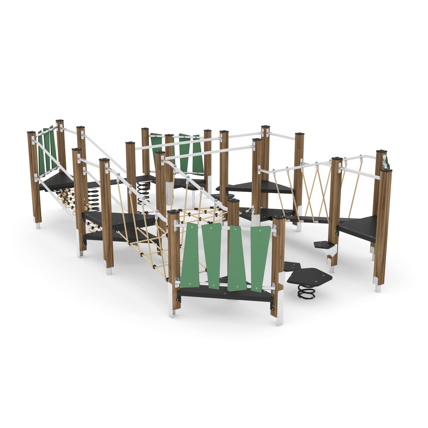 Een parcours biedt kinderen de kans om een reeks speeltoestellen te ontdekken die met elkaar verbonden zijn. Of het nu gaat om balanceren, klimmen of springen, een parcours daagt kinderen uit om actief en creatief te spelen.