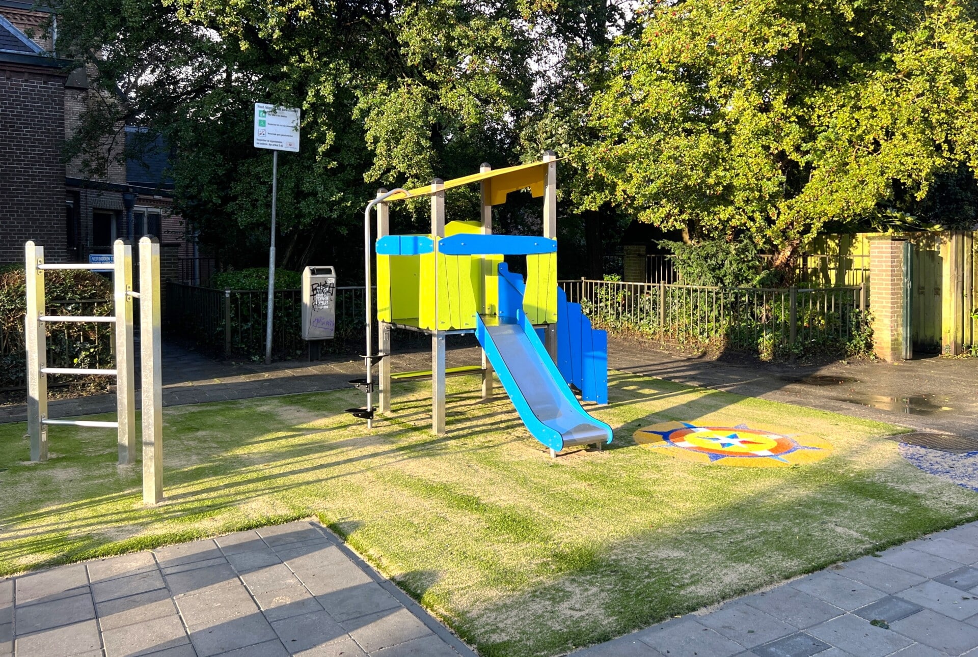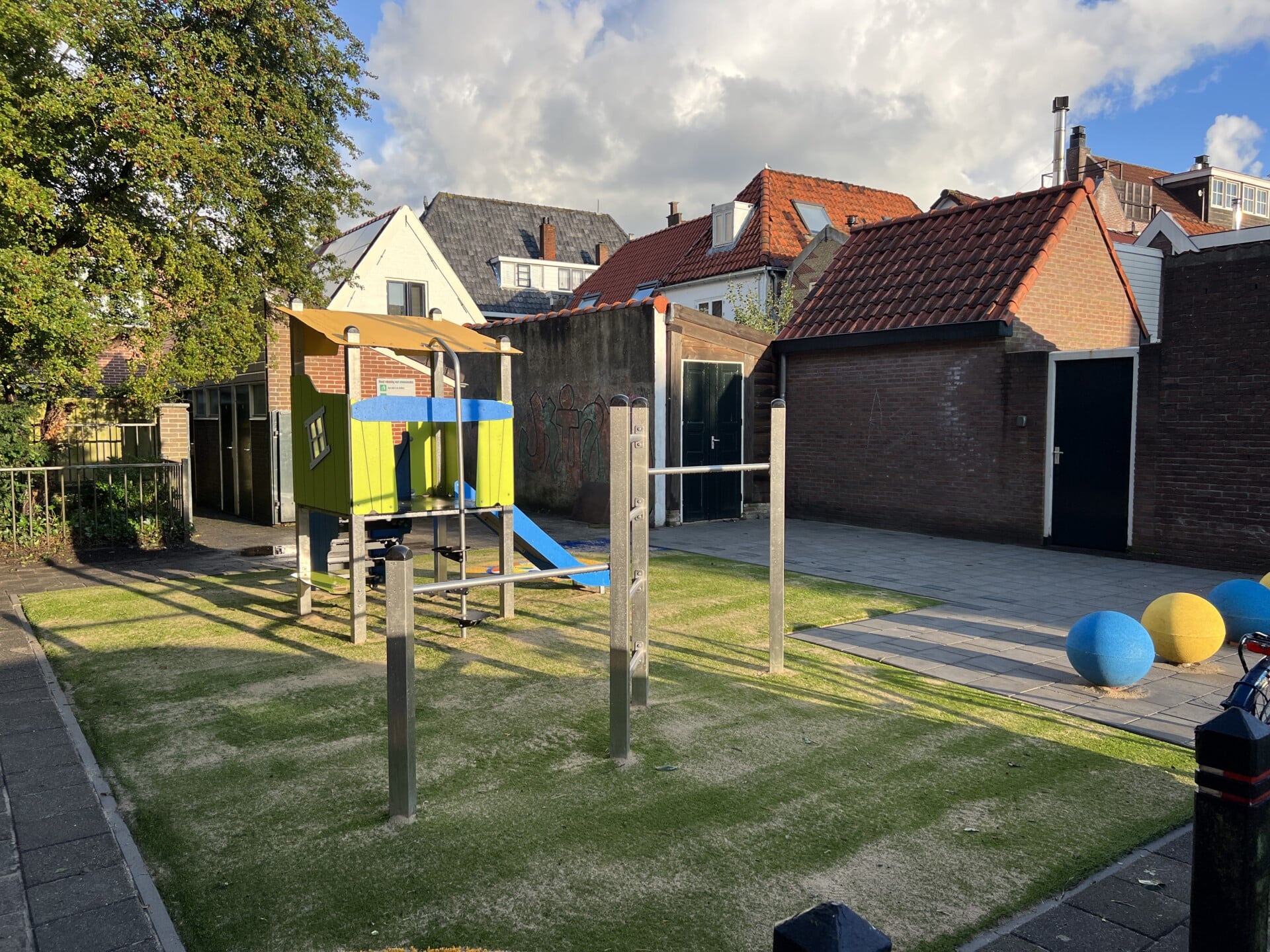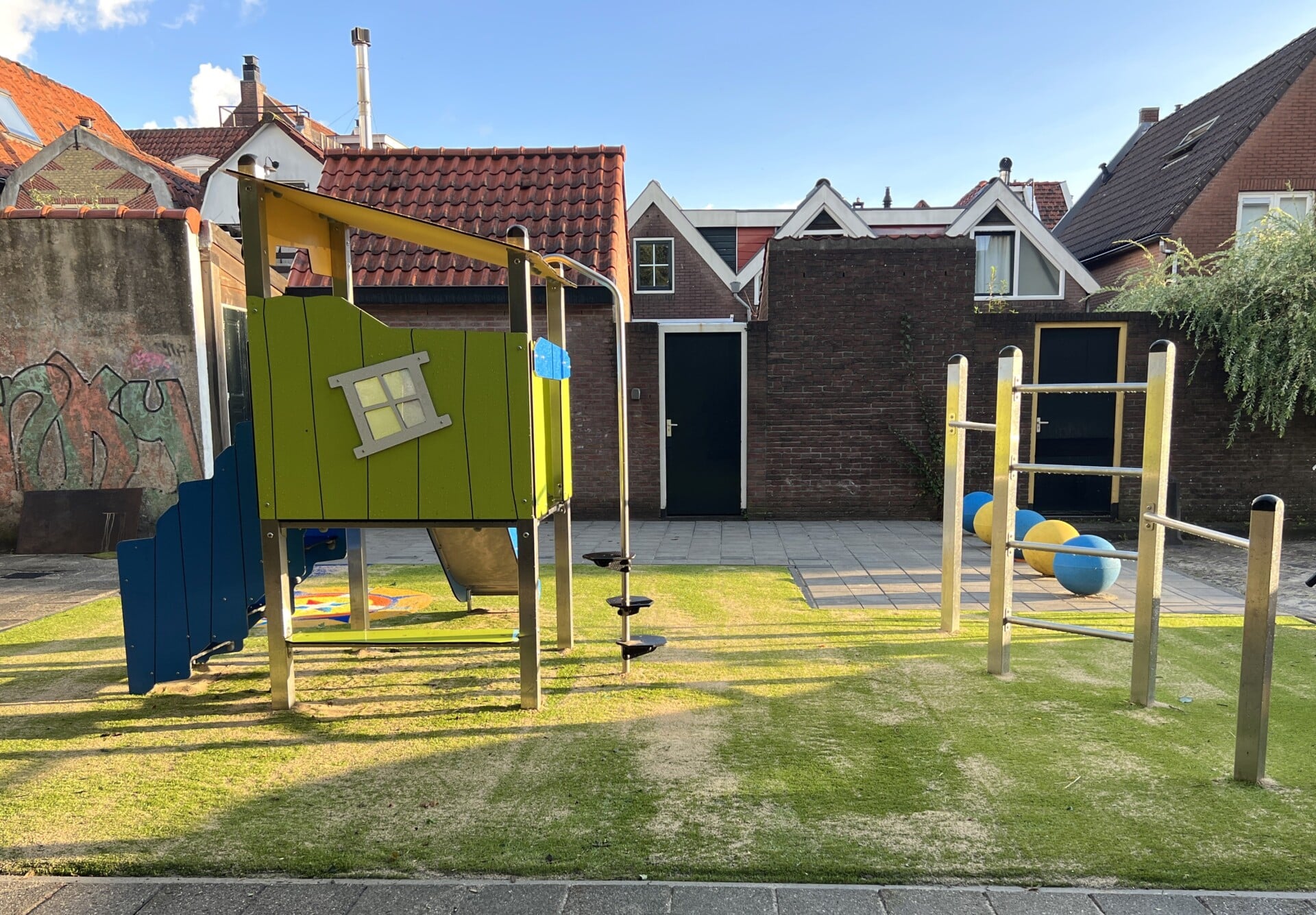Direct gelegen naast de Laurentiuskerk in de oude binnenstad van Alkmaar is een klein speelplekje voor de buurtkinderen en toevallige passanten. Stadswerk072 vroeg ons om hiervoor een compact en passend ontwerp te maken dat opvalt door niet op te vallen. Met toestel CR0304 uit de Crooc serie van Vinciplay in combinatie met duikel en klimrek CL1750 uit de Climboo serie is het gelukt om een voor de kinderen aantrekkelijke en avontuurlijke speelplek te maken, die heel goed in deze omgeving past. Met bijpassende Speelprikkels Jollebollen – die tevens zorgen als anti-parkeer maatregel – plus een qua kleurstelling bijpassend Kompas verwerkt in het valdempende kunstgras is deze plek de komende jaren weer helemaal up-to-date.