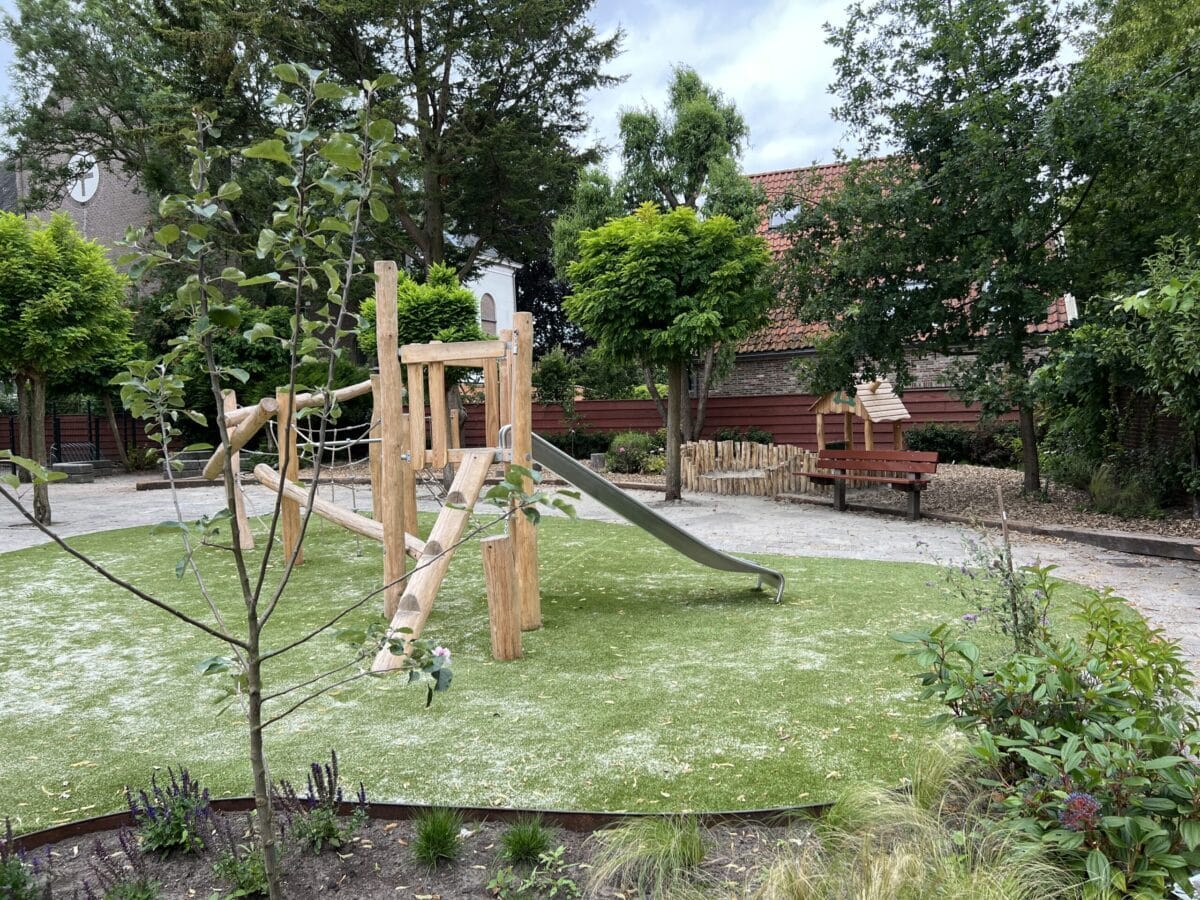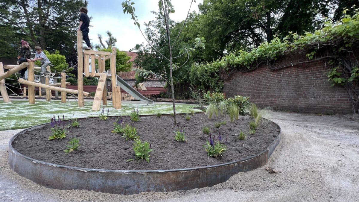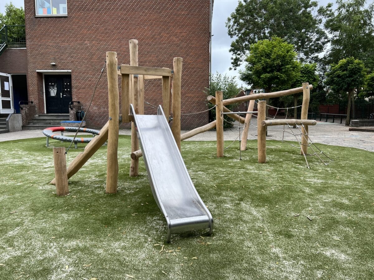 Bij de Nieuwe School in Edam is een complete “Schoolplein-Make-Over” gedaan. In goede samenwerking met Vreeker BV zijn naast nieuwe speeltoestellen ook nieuwe borders, beplanting, bomen, houtsnippers en valdempend kunstgras aangebracht. Speeltoestellen bestaan uit Speelhuis RB1201, Tweevoudig duikelrek RB1264 en Klim en glijcombinatie RB1311 en een draaischijf. Het speelhuis is gecombineerd met diverse stapstenen en een zandbak; om dit binnen de normen te kunnen doen is hiervoor een locatie EN1176 certificaat verstrekt door Keurmerk instituut. Na de zomer wordt nog een klimmuur aangebracht.
