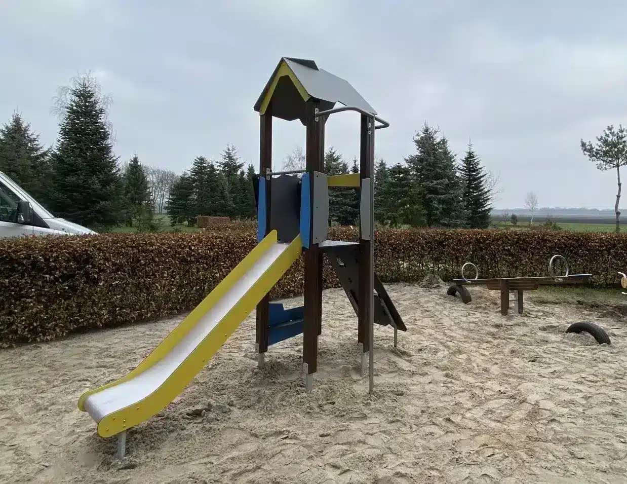Bij landschapscamping de Sparrenhof in Gasselte is op het terrein een geïnvesteerd in een aantal nieuwe professionele speeltoestellen. Wij mochten uit de Wooden Serie speeltoestellen de Glij en Speeltoren WD1404 leveren gecombineerd met de balkenwip WD1425. Beide toestellen hebben als basis fraai gelamineerd Grenenhout gecombineerd met RVS elementen en HDPE panelen. Plaatsing van deze toestellen is is samenwerking met de eigenaar gedaan.