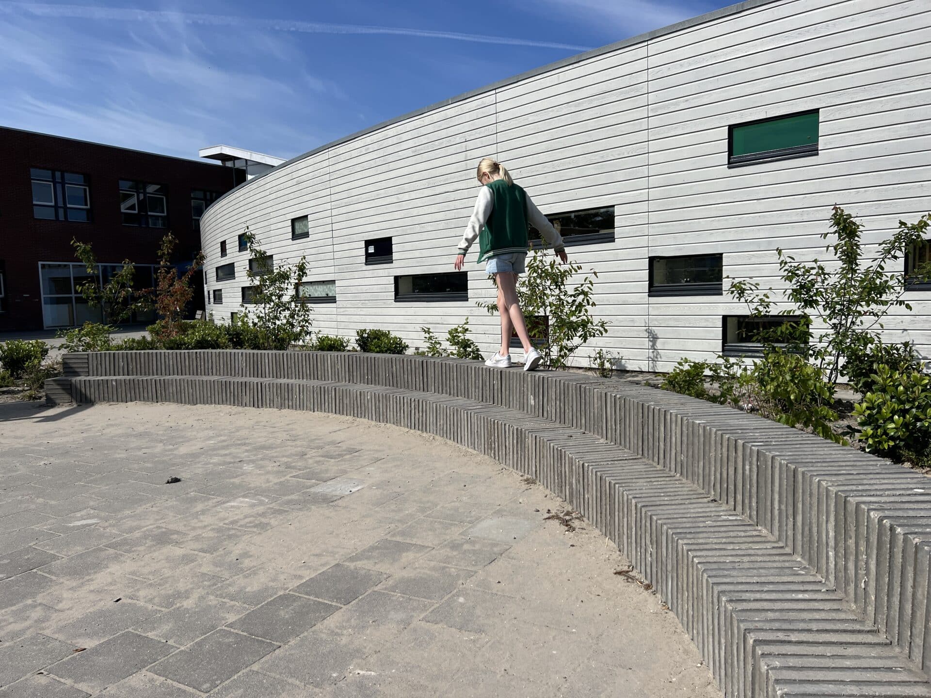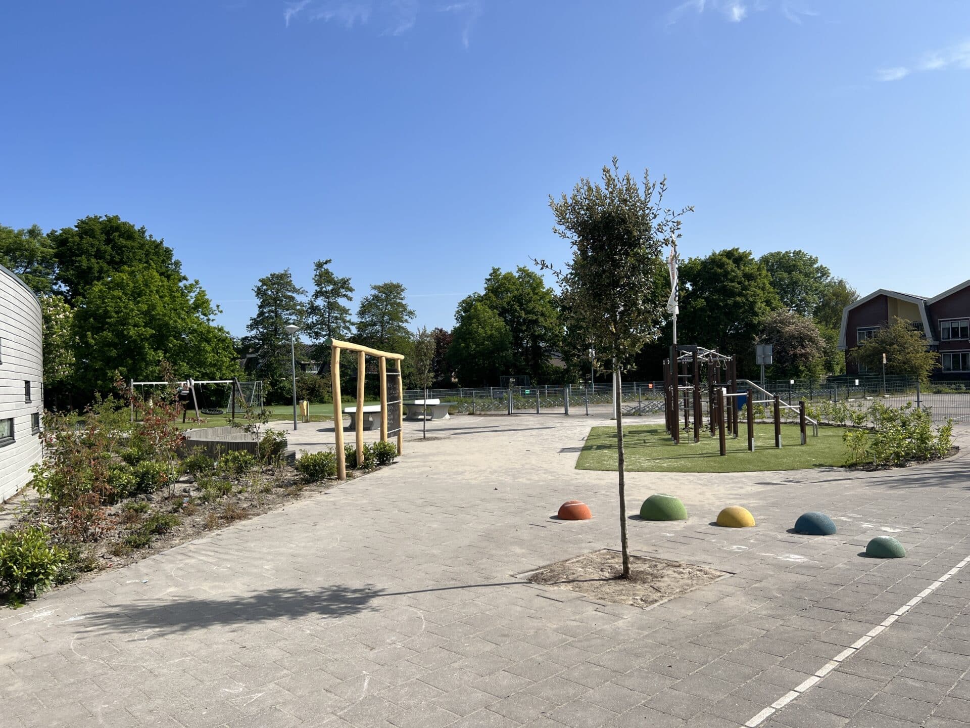 Daarnaast hebben we beplanting toegevoegd die het plein een groenere uitstraling geeft en bijdraagt aan een prettige leer- en speelomgeving. Met deze veelzijdige inrichting sluit het plein perfect aan bij de wensen van de school: een duurzaam, avontuurlijk en inspirerend buitenterrein voor alle bovenbouwleerlingen.
