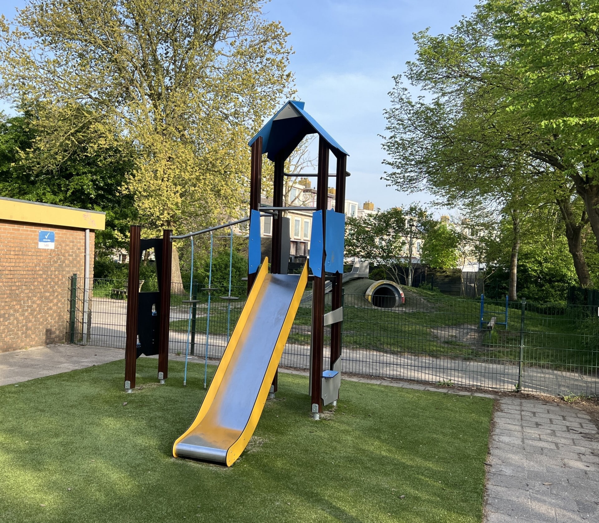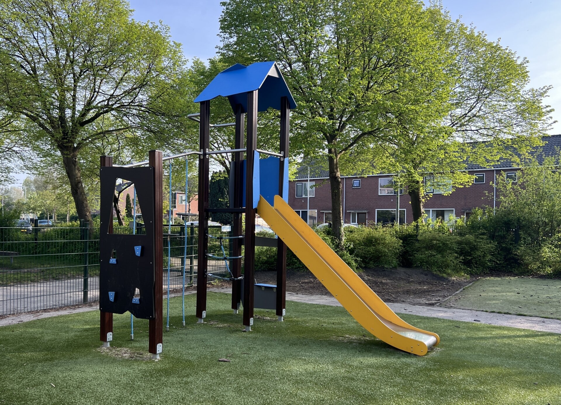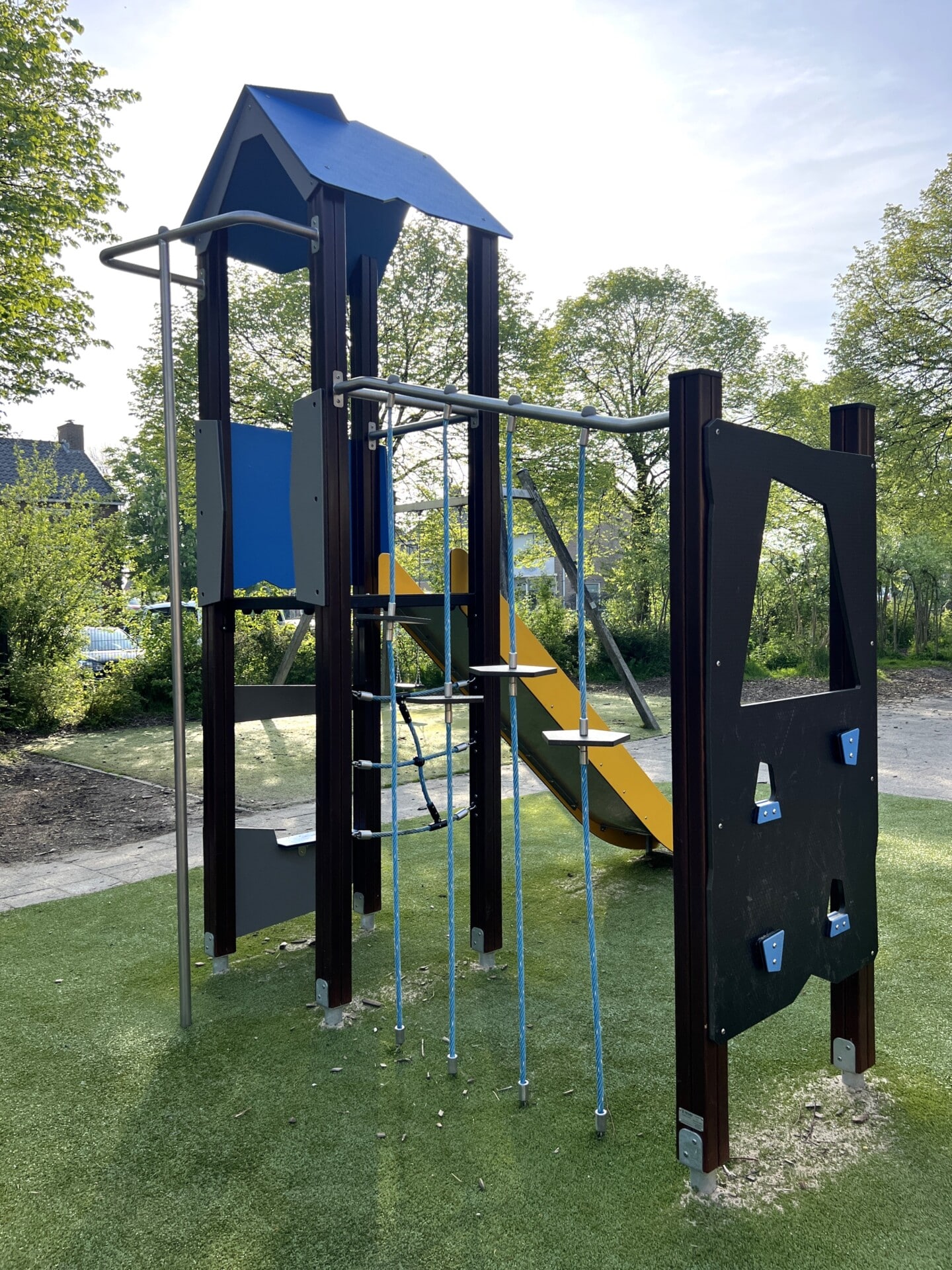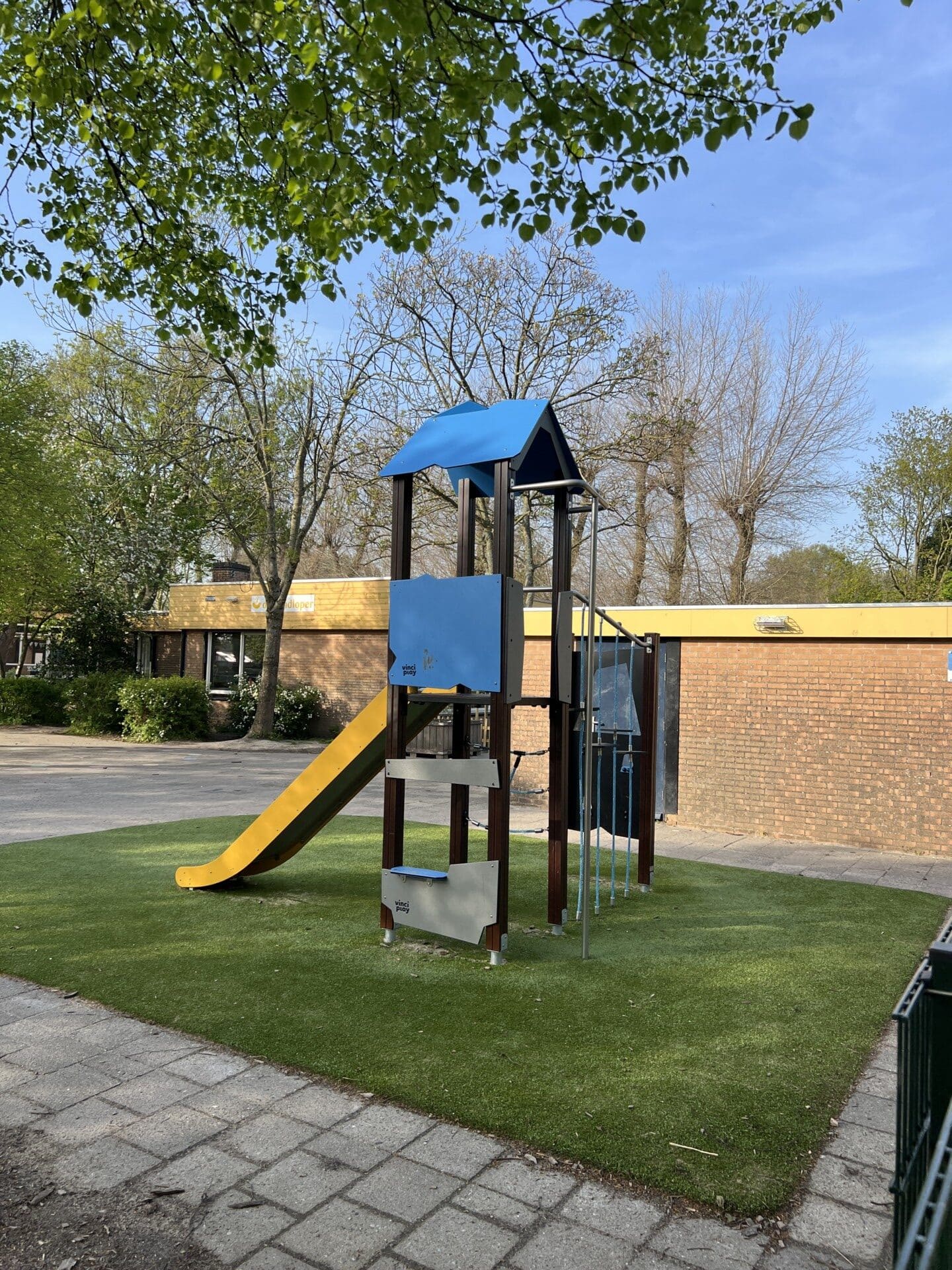 Bij BS de Zandloper in Koedijk is onlangs speeltoestel WD1405 geplaatst.  Het team van de Zandloper koos voor de HDPE uitvoering, waardoor het toestel een vrolijk gekleurde uitstraling heeft.  Deze compacte speeltoren heeft veel speelfuncties waaronder een brandweerglijstang, klimwand, verkooploket, klimnet, balanceertouwen, uitkijktoren en een fel gekleurde glijbaan.  Valdempend kunstgras maakt het geheel mooi en strak af.