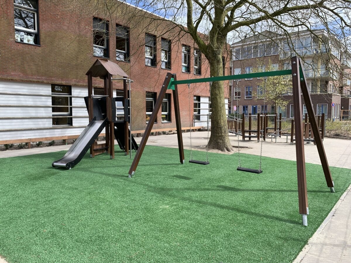 Voor basisschool OBS de Wijde Veert in Scharwoude hebben we een prachtige speelplek gerealiseerd met veel groen. Een schommel, klimtoestel en diverse andere leuke toestellen zorgen ervoor dat de kinderen elke pauze en voor en na schooltijd kunnen klimmen, klauteren, spelen en genieten.