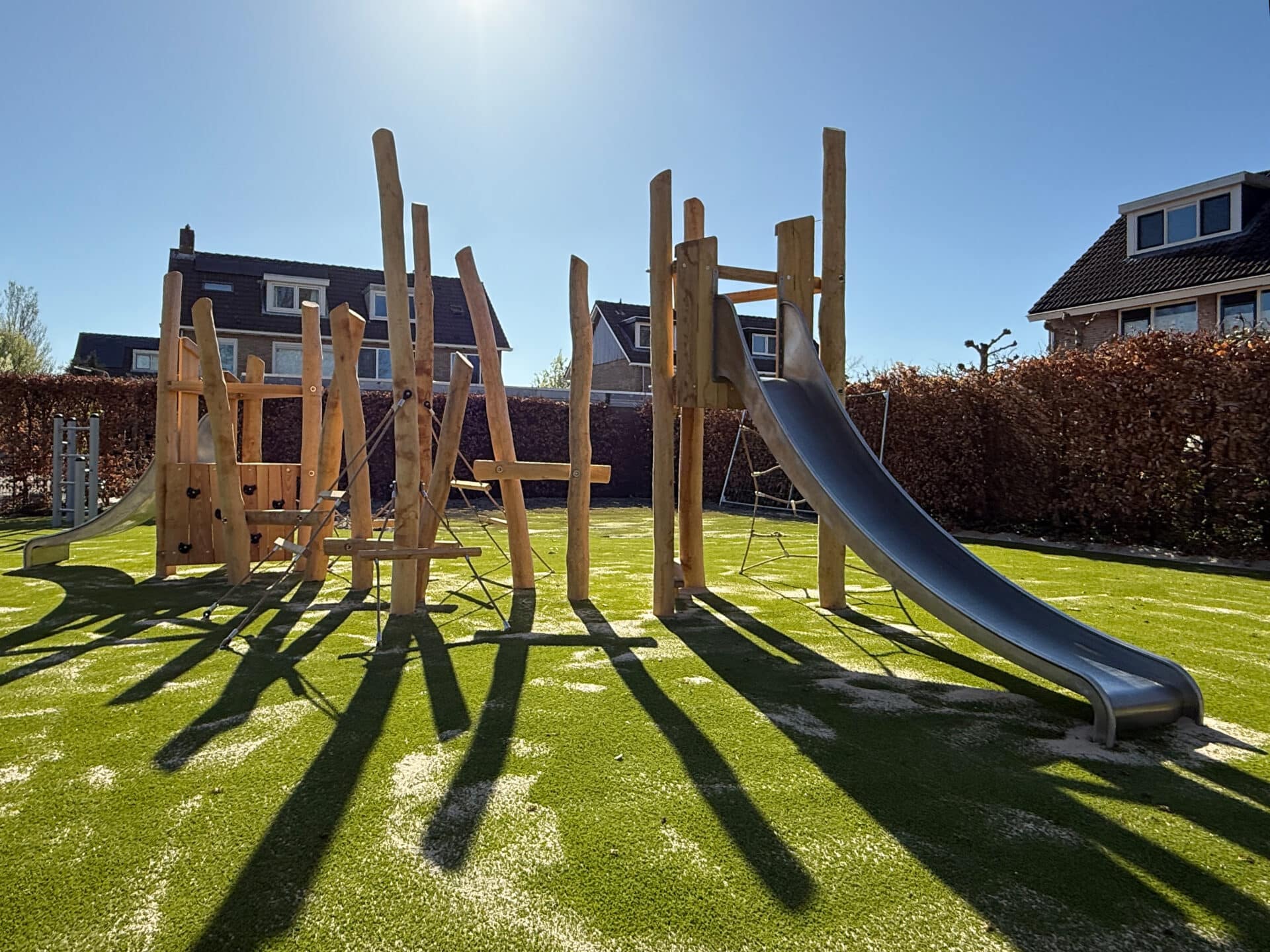 Blikvanger van het terrein is de langgerekte speelcombinatie WDD0815, uitgerust met een dubbele glijbaan en diverse klim- en klauterelementen die uitnodigen tot actief en uitdagend spel. Daarnaast zijn er klassiekers toegevoegd zoals schommels en duikelrekken die zorgen voor variatie en herkenbaarheid.