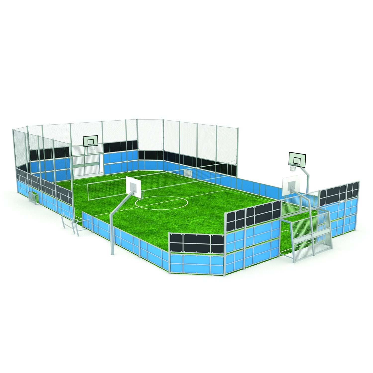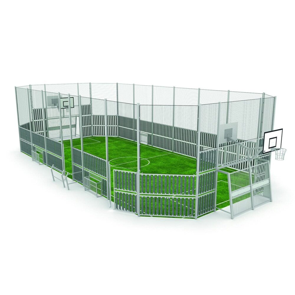 Mididoel; Robuust en geluidsarm constructie, uitgevoerd in een zwaar gegalvaniseerd spijlenhekwerk. Met dit mididoel worden gebruikers behendiger met de bal.