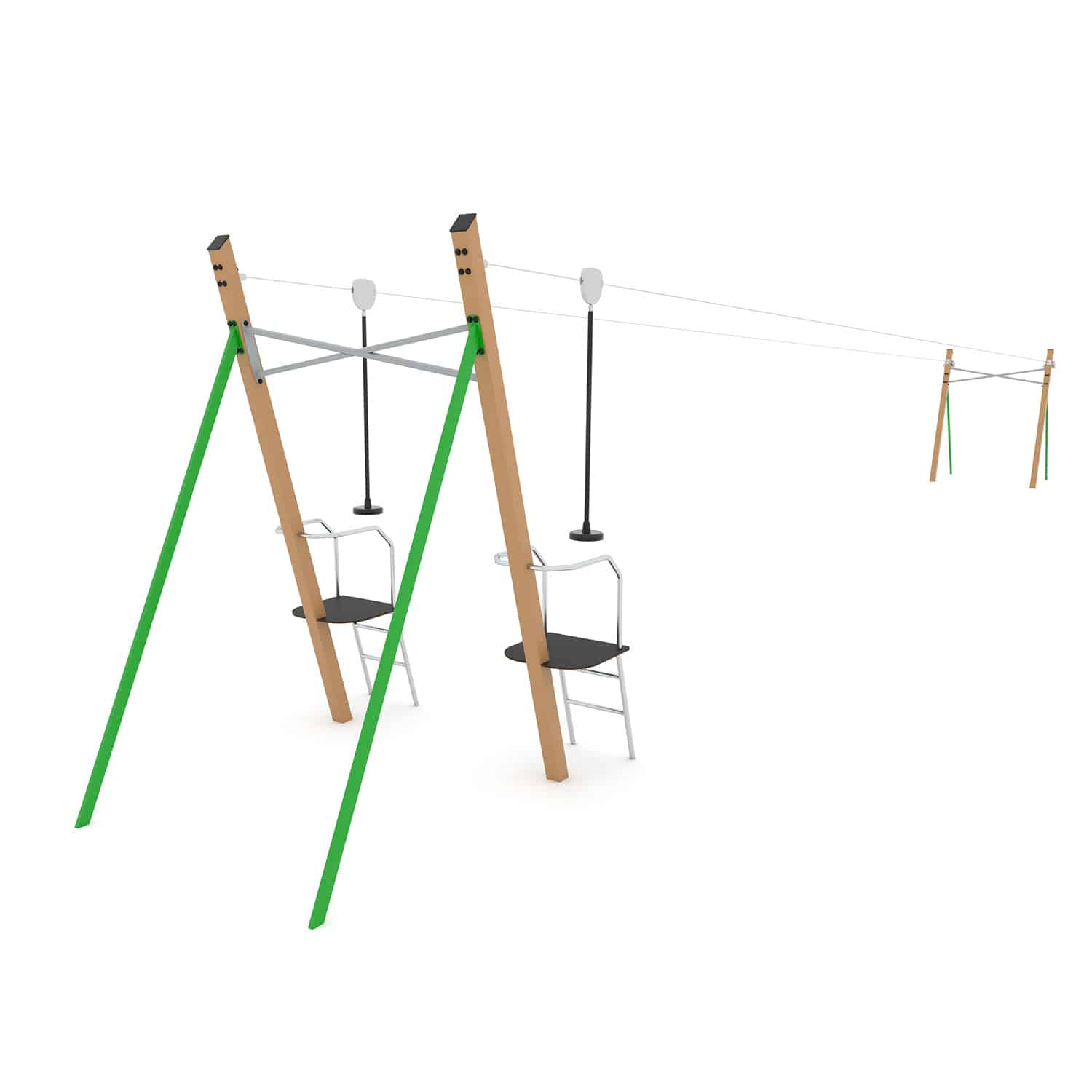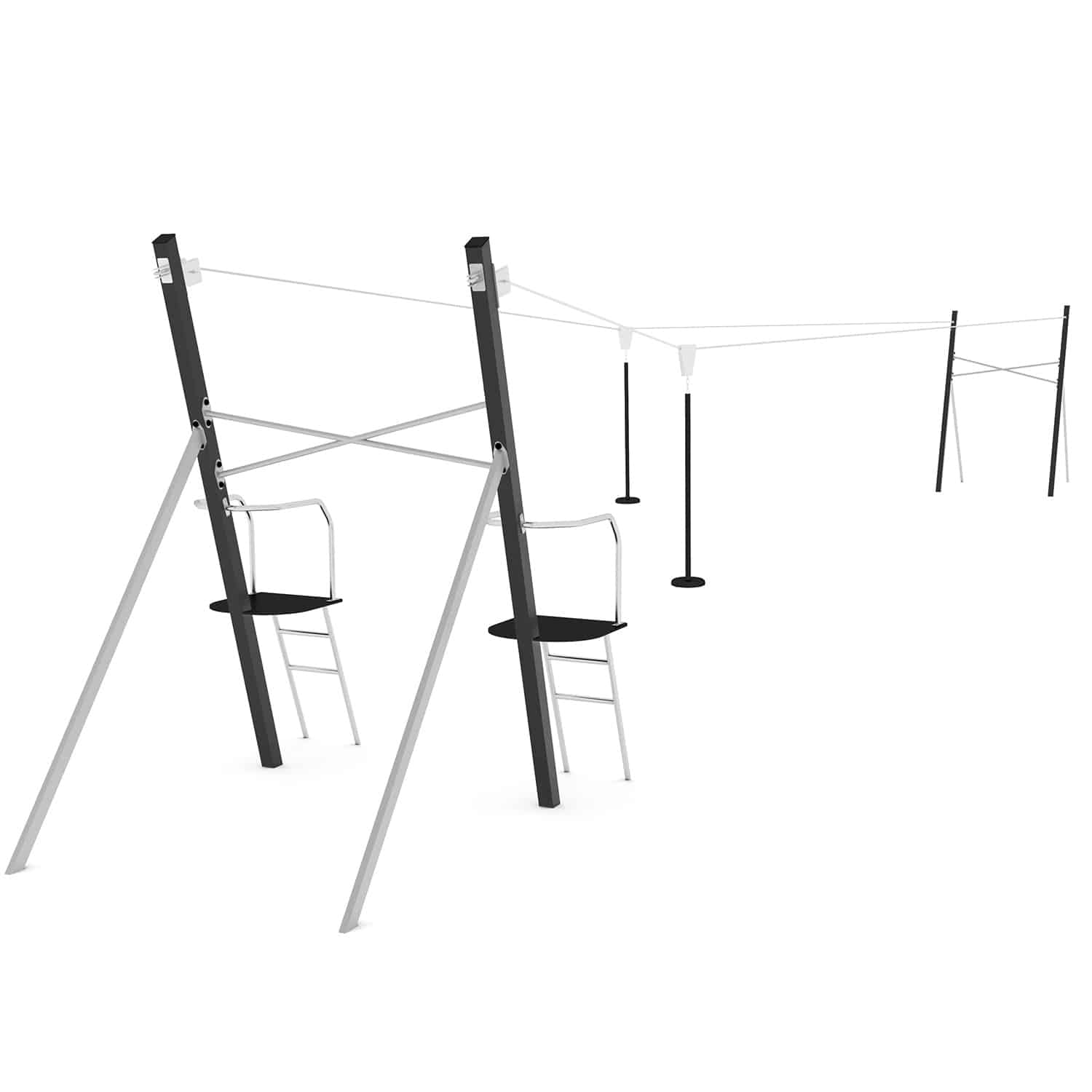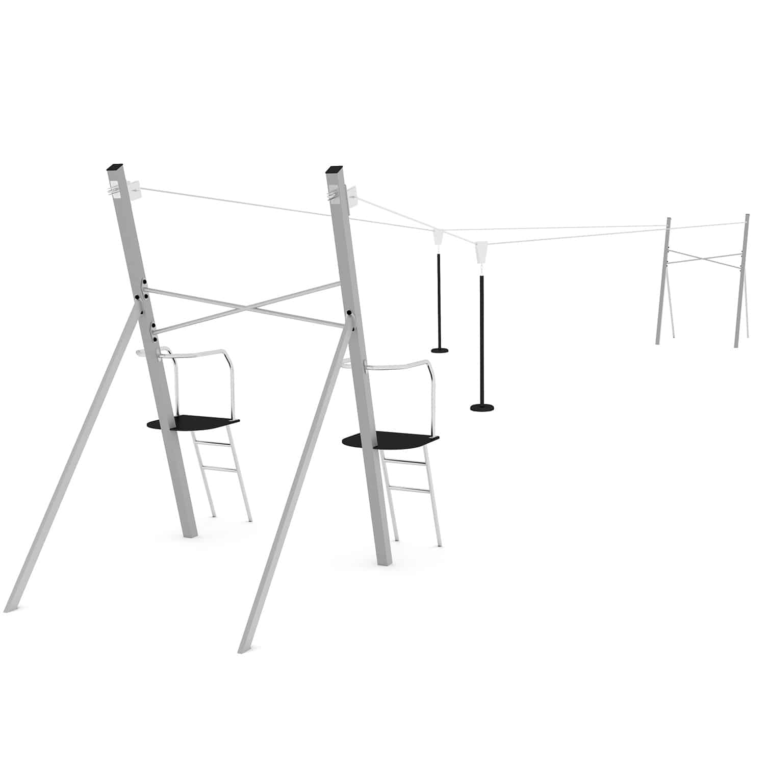 Dubbele kabelbaan om samen naar de andere kant te zoeven. Deze kabelbaan wordt standaard inclusief startplatformen geleverd, een talud is daarom niet nodig. Deze kabelbaan is in diverse lengtes leverbaar, vraag ons naar de mogelijkheden.