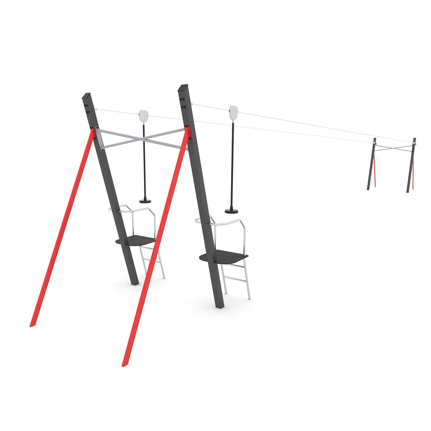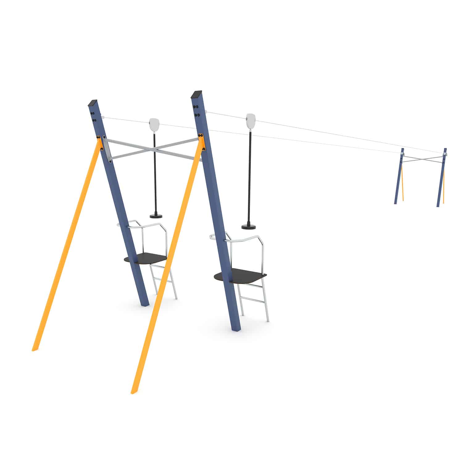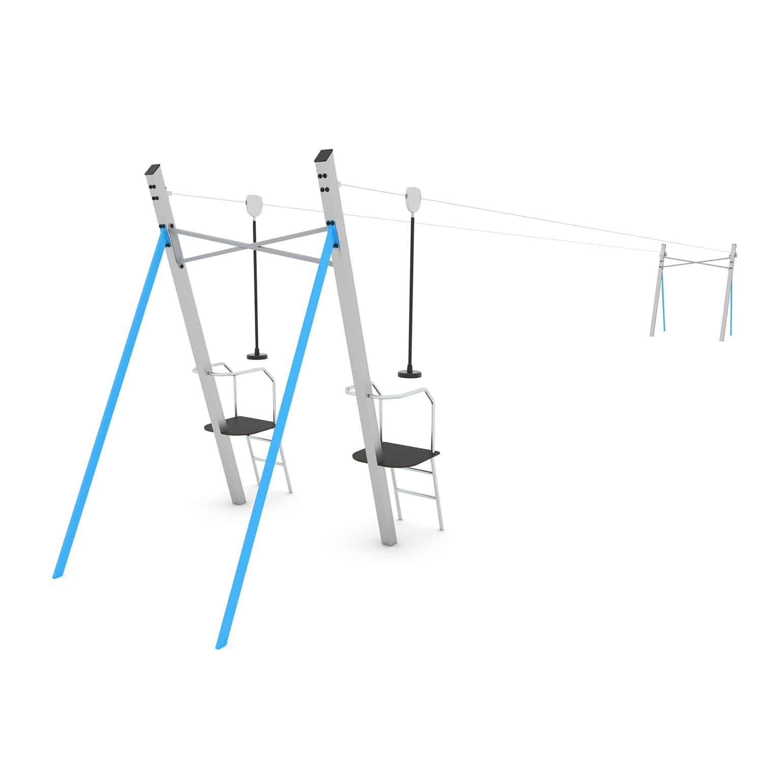 Dubbele kabelbaan om samen naar de andere kant te zoeven. Deze kabelbaan wordt standaard inclusief startplatformen geleverd, een talud is daarom niet nodig. Deze kabelbaan is in diverse lengtes leverbaar, vraag ons naar de mogelijkheden.