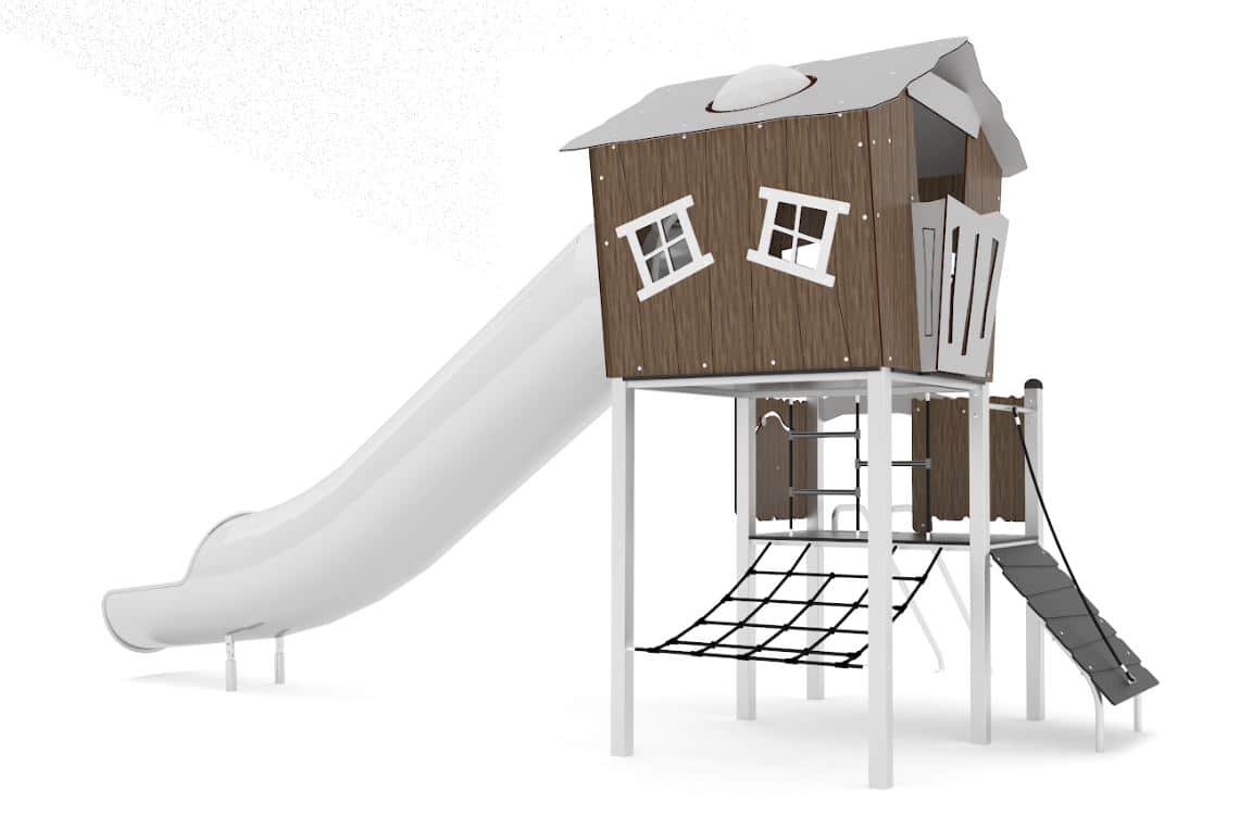 Het bijzondere en opvallende design van de Crooc serie is een lust voor het oog. Ook kwalitatief valt er niets op af te dingen, het plaatmateriaal is vervaardigd uit fraai afgewerkt HPL welke in frisse kleuren (blauw, geel en mintgroen) geleverd wordt. Daarnaast kan er tevens gekozen worden voor de iets rustigere (en natuurlijke) bruine houtprint. De toestellen laten zich dan ook moeiteloos combineren met een avontuurlijke speeltuin. Staanders en stangen zijn standaard gemaakt van RVS net als de flinke buisglijbaan die geheel hoogwaardig RVS is!