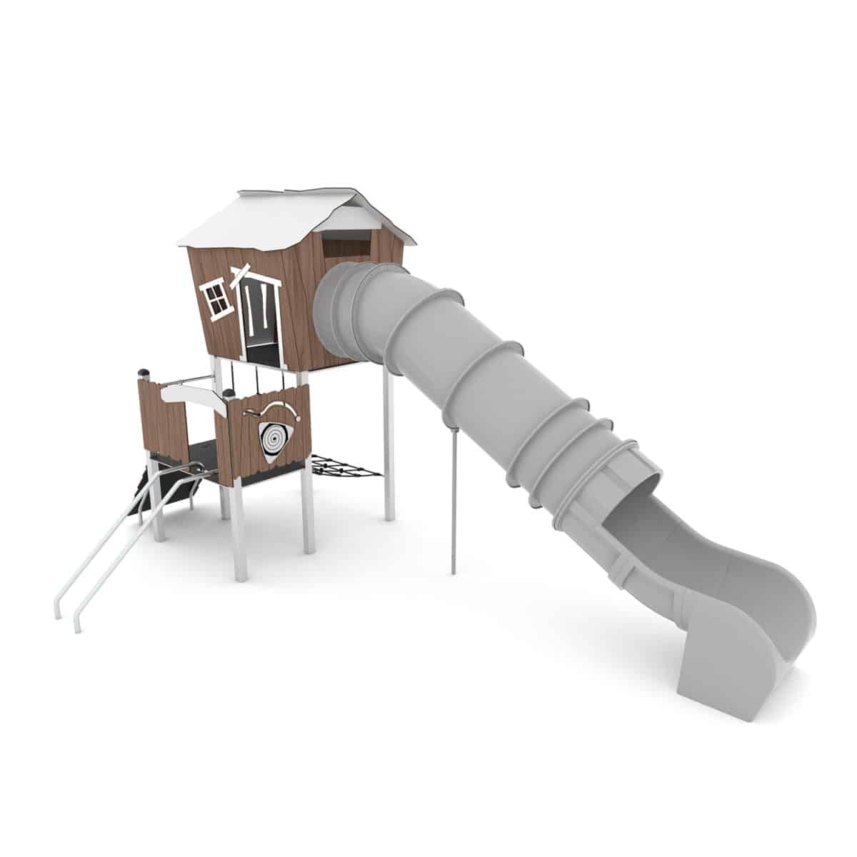 Speelcombinatie met PE buisglijbaan, klimelementen en glijstangen