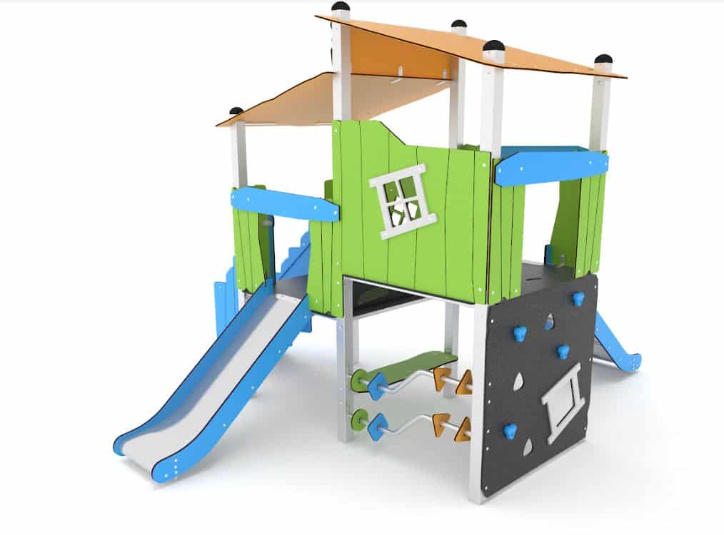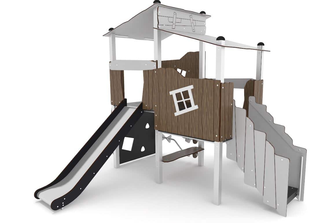 Het bijzondere en opvallende design van de Crooc serie is een lust voor het oog. Ook kwalitatief valt er niets op af te dingen, het plaatmateriaal is vervaardigd uit fraai afgewerkt HPL welke in frisse kleuren (blauw, geel en mintgroen) geleverd wordt. Daarnaast kan er tevens gekozen worden voor de iets rustigere (en natuurlijke) bruine houtprint. De toestellen laten zich dan ook moeiteloos combineren met een avontuurlijke speeltuin.  Staanders, glijbanen en stangen zijn standaard gemaakt van RVS.