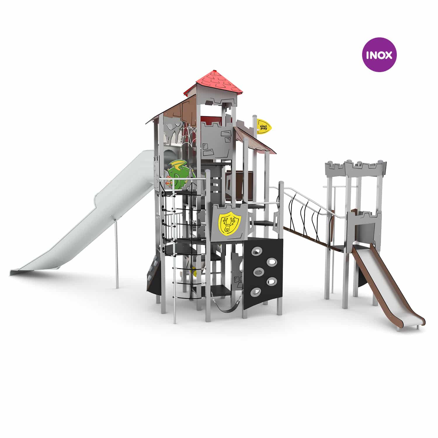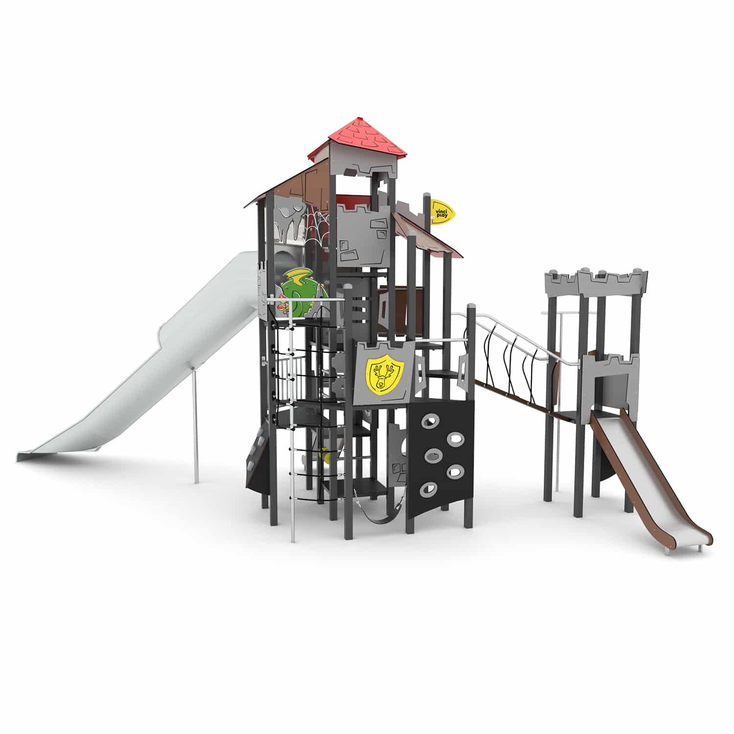 De Castillo-serie bestaat uit een indrukwekkende serie speelcombinaties in Kasteelthema. Door de sprookjesachtig vormgegeven speeltoestellen kan rollenspel tot ware kunst verheven worden. Daarnaast raak je niet uitgespeeld door de vele manipulatieve elementen die in de producten verwerkt zijn. Binnen de serie is er niet bespaard op kwaliteit. Hoogwaardige verzinkte stalen staanders met coating vormen de stabiele basis, plaatwerk is vervaardigd uit hoogwaardig HDPE en HPL kunststof en bruggen en klimnetten zijn van staalversterkt touwwerk. Met torens tot wel 9.00 meter hoog kan er op verschillende niveaus worden gespeeld en zijn de RVS buisglijbanen een regelrechte hit!