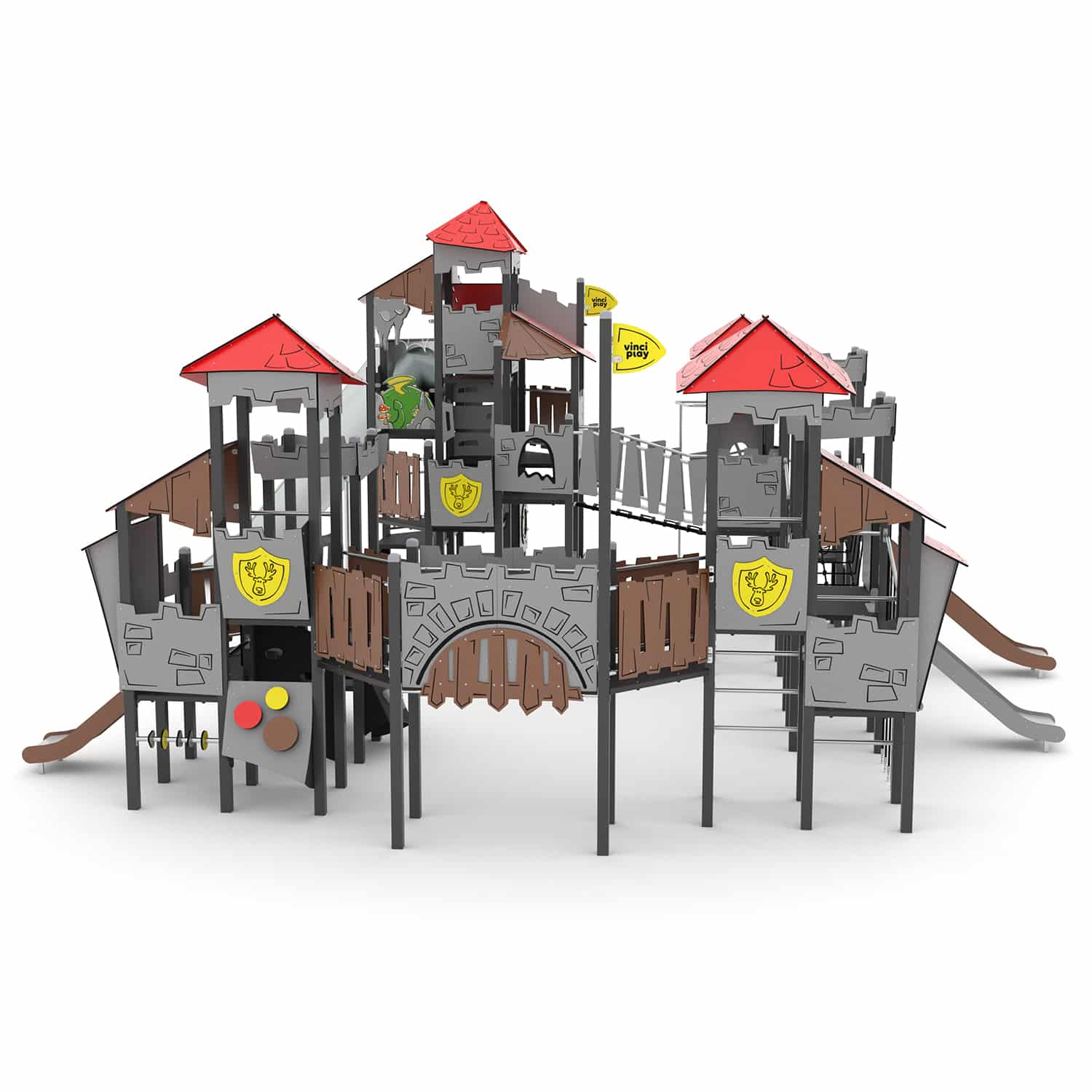 De Castillo-serie bestaat uit een indrukwekkende serie speelcombinaties in Kasteelthema. Door de sprookjesachtig vormgegeven speeltoestellen kan rollenspel tot ware kunst verheven worden. Daarnaast raak je niet uitgespeeld door de vele manipulatieve elementen die in de producten verwerkt zijn. Binnen de serie is er niet bespaard op kwaliteit. Hoogwaardige verzinkte stalen staanders met coating vormen de stabiele basis, plaatwerk is vervaardigd uit hoogwaardig HDPE en HPL kunststof en bruggen en klimnetten zijn van staalversterkt touwwerk. Met torens tot wel 9.00 meter hoog kan er op verschillende niveaus worden gespeeld en zijn de RVS buisglijbanen een regelrechte hit!