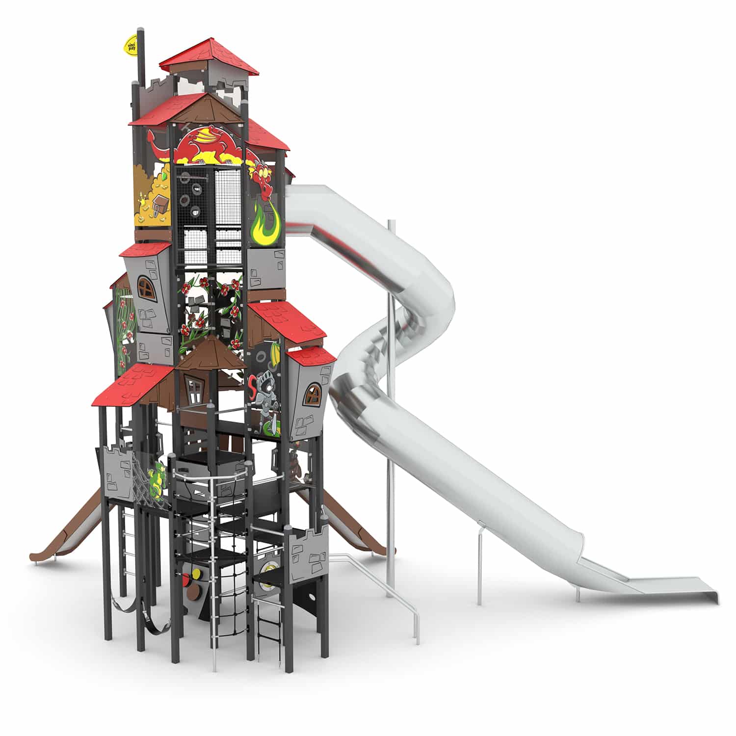 De Castillo-serie bestaat uit een indrukwekkende serie speelcombinaties in Kasteelthema. Door de sprookjesachtig vormgegeven speeltoestellen kan rollenspel tot ware kunst verheven worden. Daarnaast raak je niet uitgespeeld door de vele manipulatieve elementen die in de producten verwerkt zijn. Binnen de serie is er niet bespaard op kwaliteit. Hoogwaardige RVS staanders vormen de stabiele basis, plaatwerk is vervaardigd uit hoogwaardig HDPE en HPL kunststof en bruggen en klimnetten zijn van staalversterkt touwwerk. Met torens tot wel 9.00 meter hoog kan er op verschillende niveaus worden gespeeld en zijn de RVS buisglijbanen een regelrechte hit!