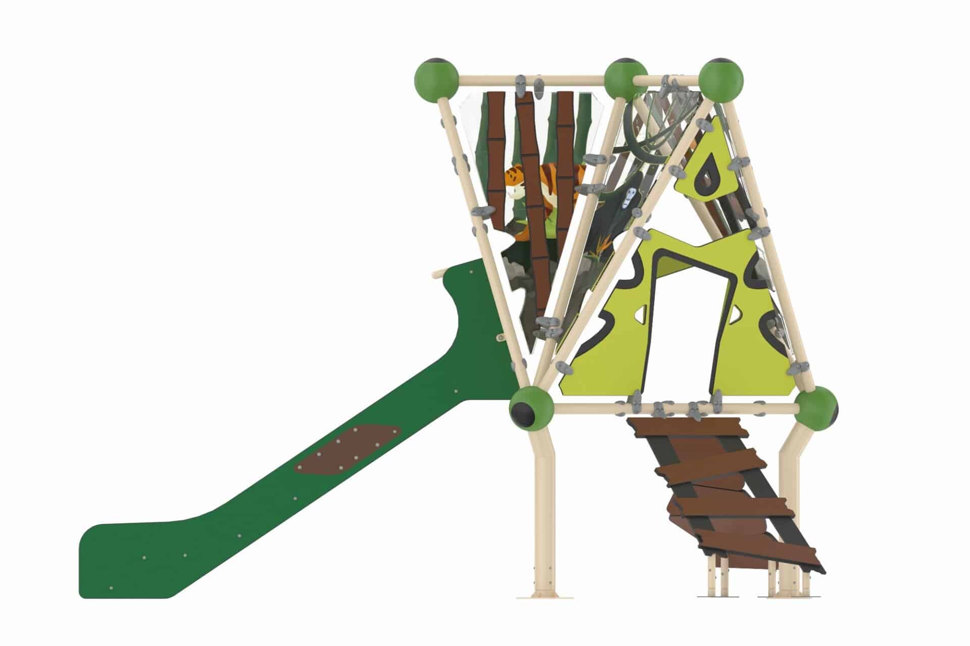 De Jungle Series bestaat uit combinaties met verschillende moeilijkheidsniveaus. Deze stimuleren de motorische vaardigheden en het competitieve vermogen van kinderen vanaf 12 jaar. De serie bevat platforms in drie geometrische vormen – driehoek, vierkant en vijfhoek – met een tentachtige uitstraling. Dit speelconcept, geïnspireerd door jungle- en natuurelementen, omvat diverse geometrische structuren, touwbruggen en klimtoestellen. Daarnaast zijn er rvs glijbanen op verschillende hoogtes, speciaal ontworpen voor kinderen van 2 tot 12 jaar.