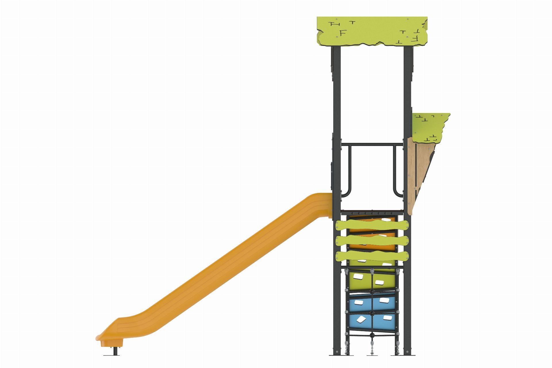 De Tetto-serie kenmerkt zich door speelcombinaties met een open structuur die wel aansluiten bij speelwensen en kleurcombinaties van vandaag de dag. Glijbanen met rvs glijvlak zijn optioneel beschikbaar voor dit artikel.