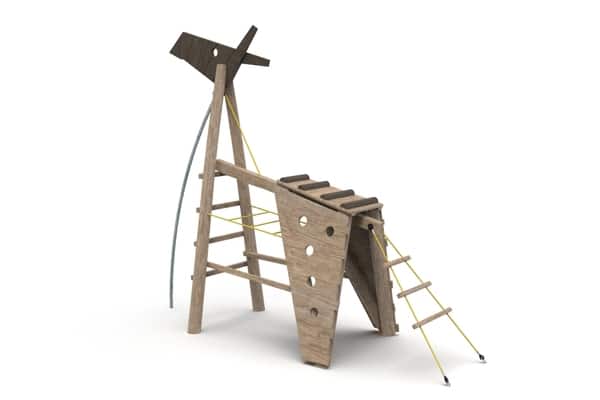 Klimcombinatie Giraffe met verschillende klimwanden en andere klimelementen.