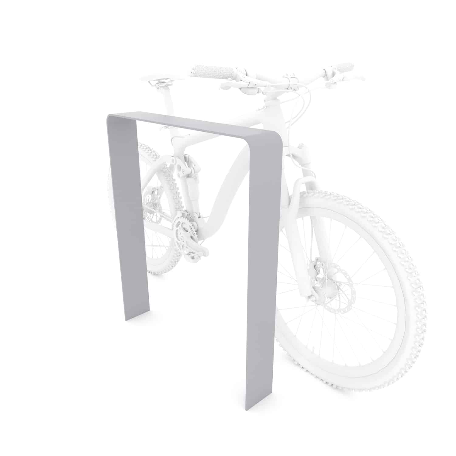 Strak vormgegeven fietsleunhek vervaardigd uit gegalvaniseerd en gepoedercoat staal.