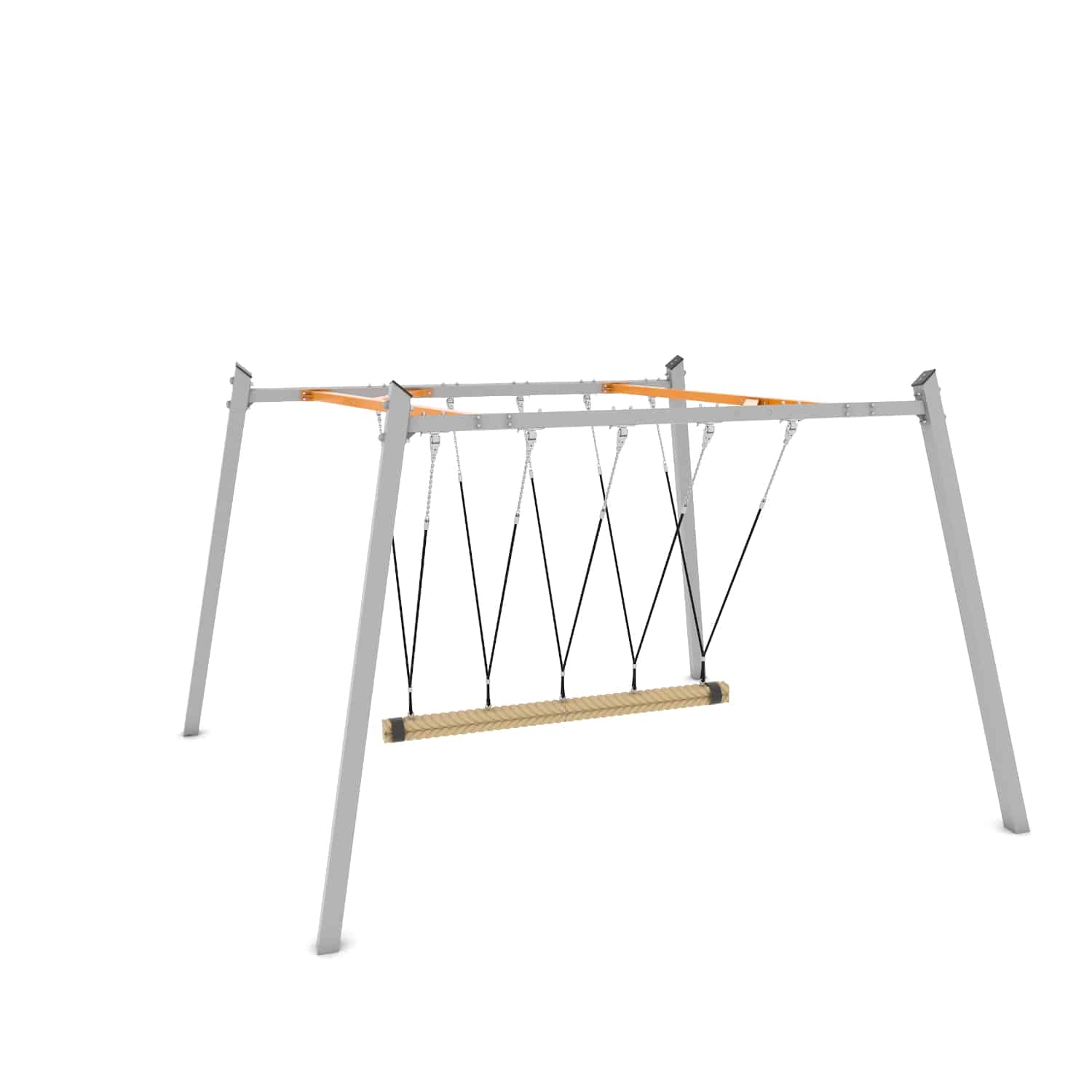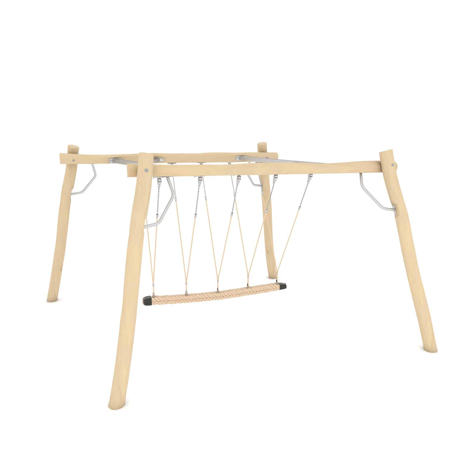 Een familieschommel is een prachtig item voor een grotere speelplek waarbij de schommelaars plaatsnemen op het flexibele kokostouw.