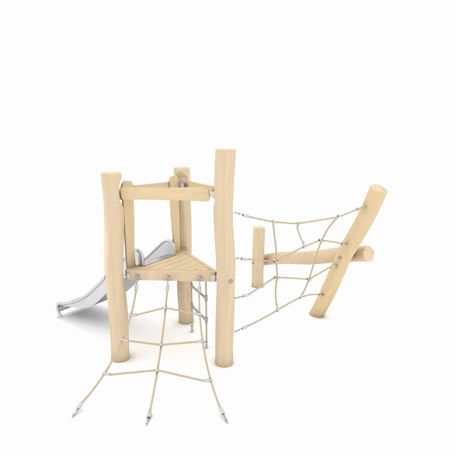 Glijtoren met klimnetten en evenwichtsbalk