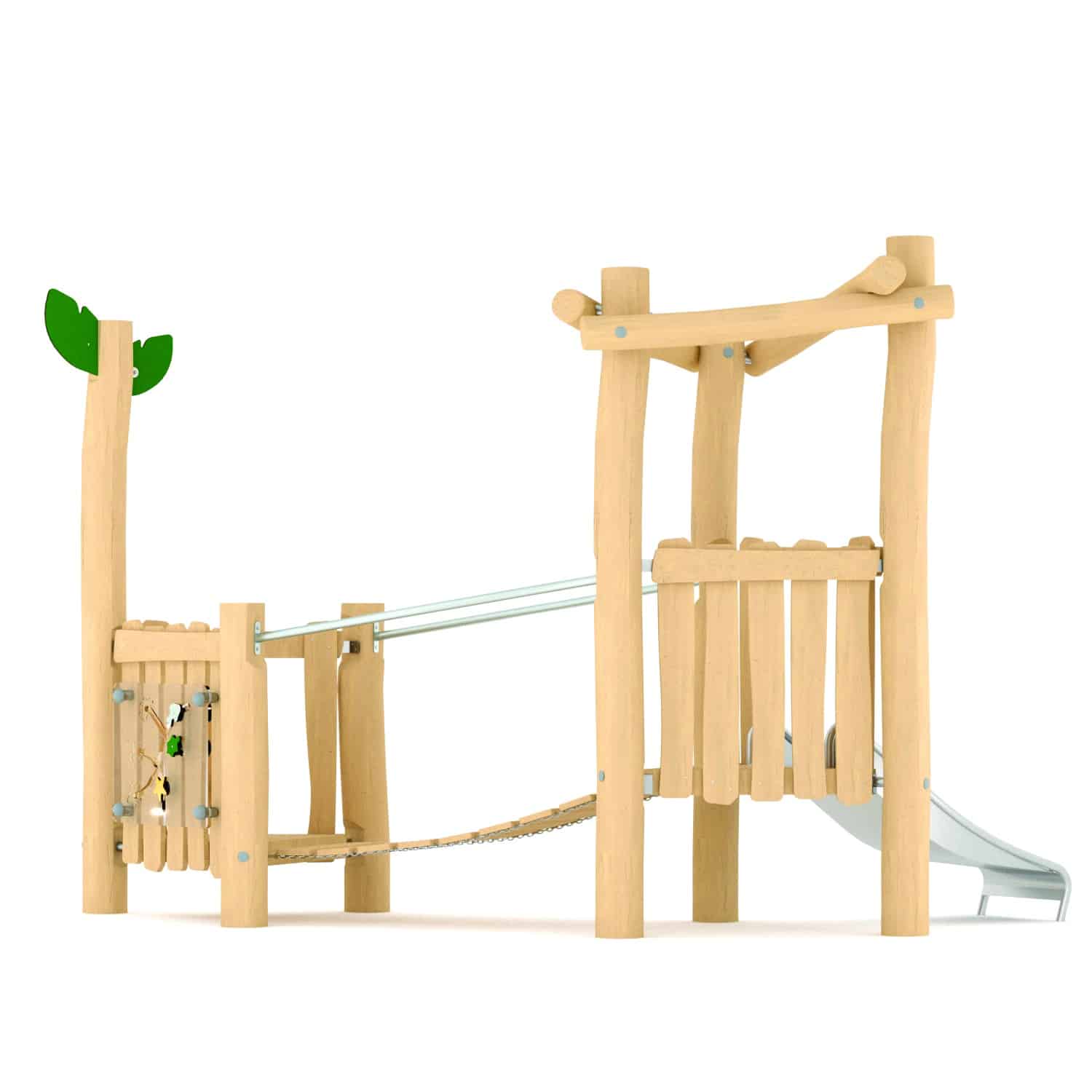 Rustieke Robinia producten geven een avontuurlijk karakter aan een speelplek. Het kan de natuurlijke uitstraling van een groene speelplek bevorderen of een mooi contrasteren met een meer moderne strakke uitstraling van de omgeving.