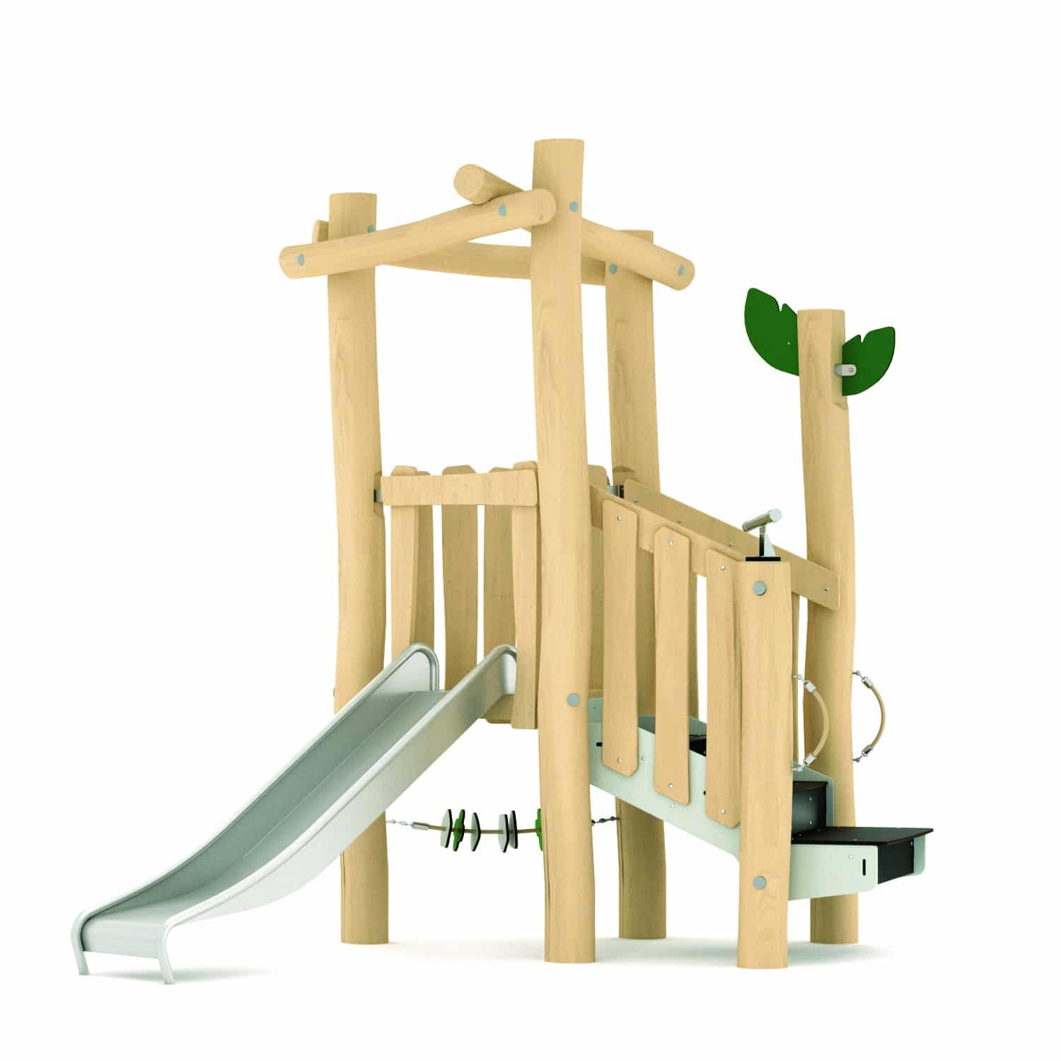 Rustieke Robinia producten geven een avontuurlijk karakter aan een speelplek. Het kan de natuurlijke uitstraling van een groene speelplek bevorderen of een mooi contrasteren met een meer moderne strakke uitstraling van de omgeving.