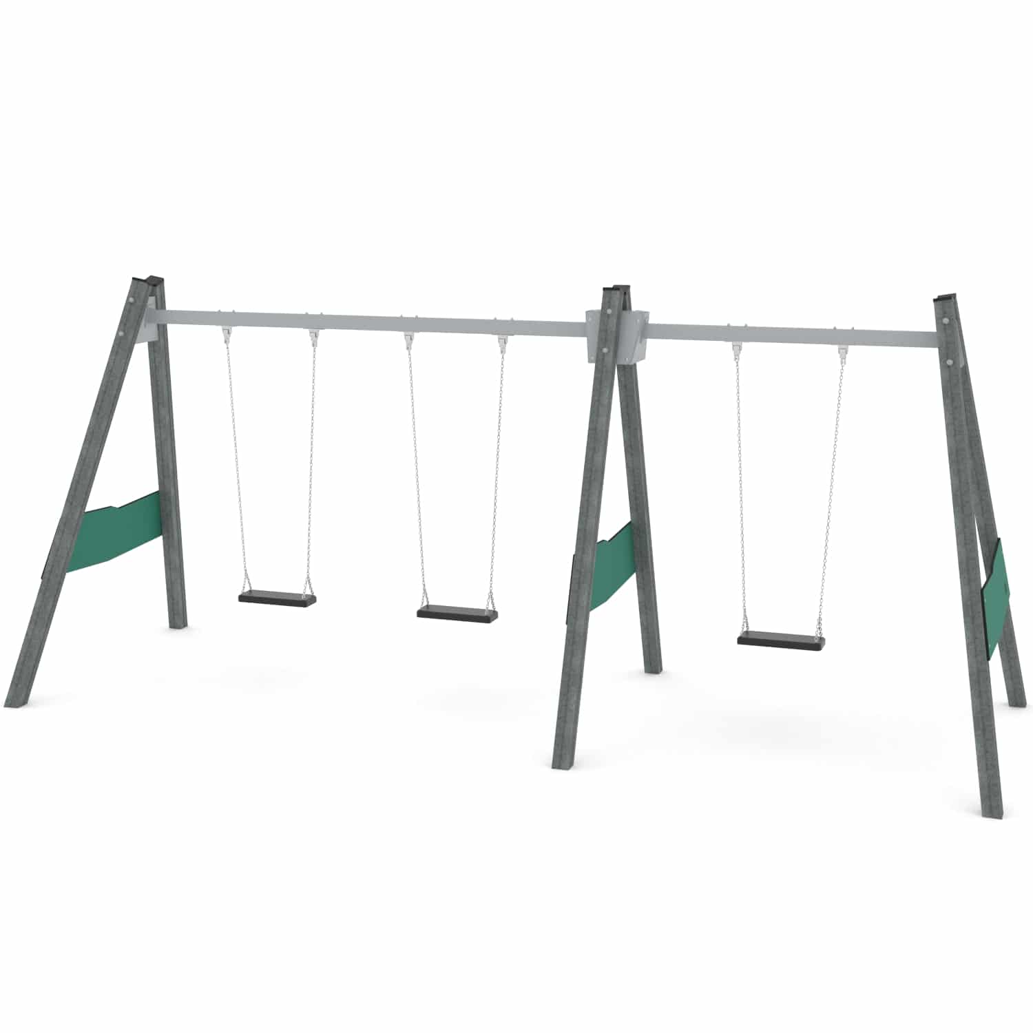 Strak vormgegeven Drievoudige schommel waarbij optioneel voor andere zitjes gekozen kan worden.