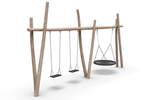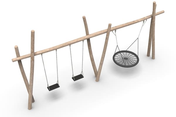 Schommelcombinatie met vogelnest en dubbele schommel.