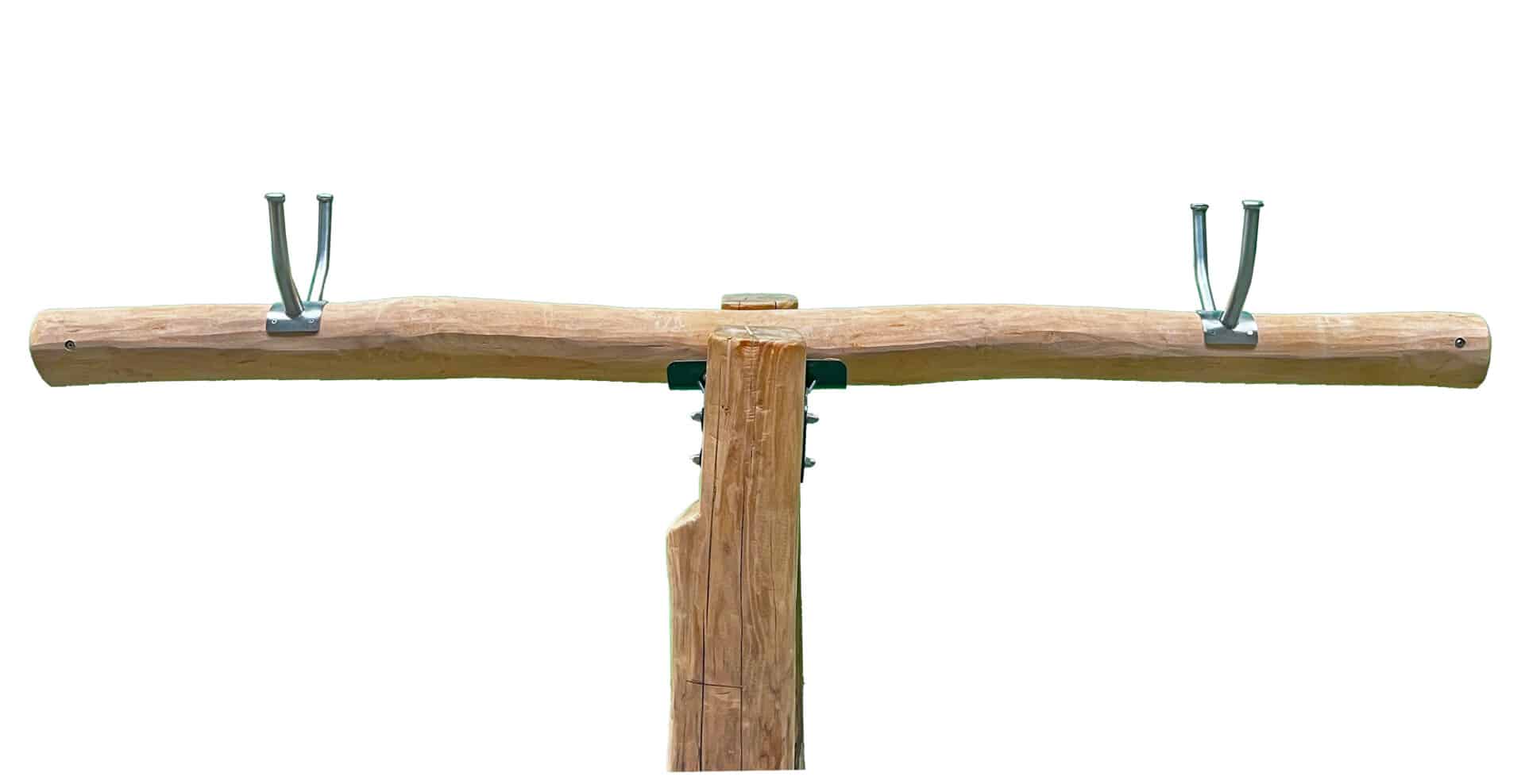 Deze 2-persoonswip van FSC Robiniahout is uitgevoerd met RVS beugels en een torsieveer waardoor de wip automatisch terugveert.