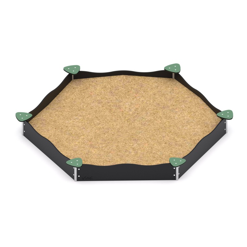 Zandbak zeshoek HPL met zitjes