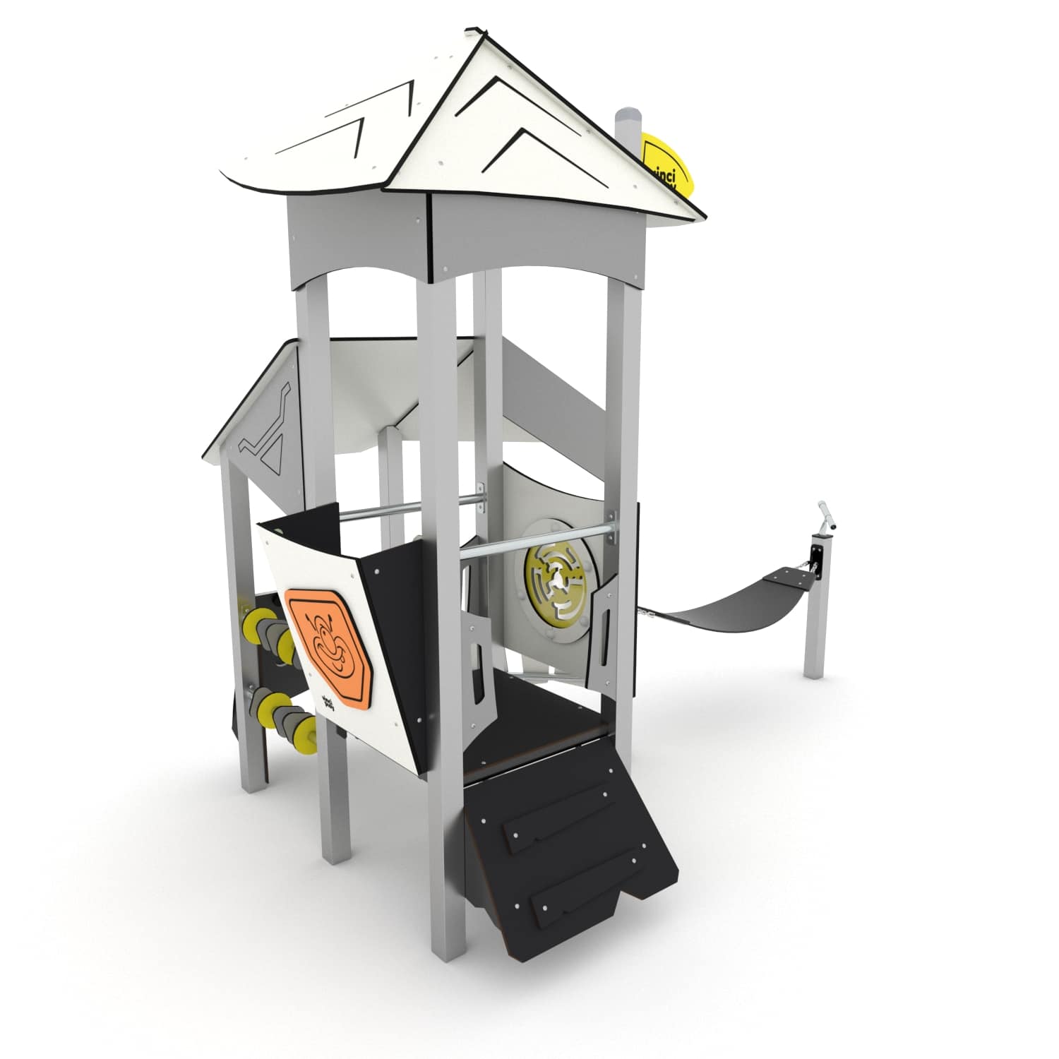 De Space serie bestaat uit een indrukwekkende serie speelcombinaties in ruimtethema. Door de thematisch vormgegeven speeltoestellen kan rollenspel tot ware kunst verheven worden. Daarnaast raak je niet uitgespeeld door de vele manipulatieve elementen die in de producten verwerkt zijn. Binnen de serie is er niet bespaard op kwaliteit. Hoogwaardige verzinkte stalen staanders met coating vormen de stabiele basis, plaatwerk is vervaardigd uit hoogwaardig HDPE en HPL kunststof en bruggen en klimnetten zijn van staal versterkt touwwerk. Met torens tot wel 9.00 meter hoog kan er op verschillende niveaus worden gespeeld en zijn de RVS buisglijbanen een regelrechte hit!