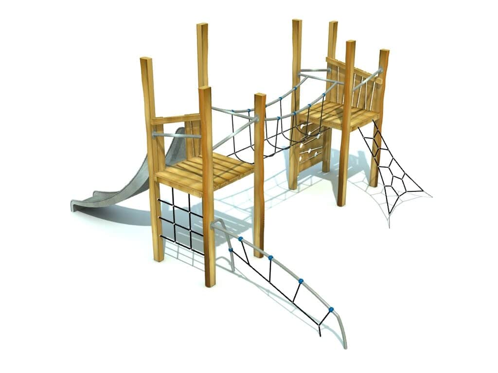 De Rob Roy-serie combineert geschaafd robiniahout met gegalvaniseerd staal voor maximale duurzaamheid en een tijdloze, natuurlijke look. De toestellen zijn ontworpen voor intensief, openbaar gebruik en vragen weinig onderhoud. Met de vele configuraties en uitbreidingen realiseer je voor elke locatie een onderscheidende speelplek met hoge speelwaarde.