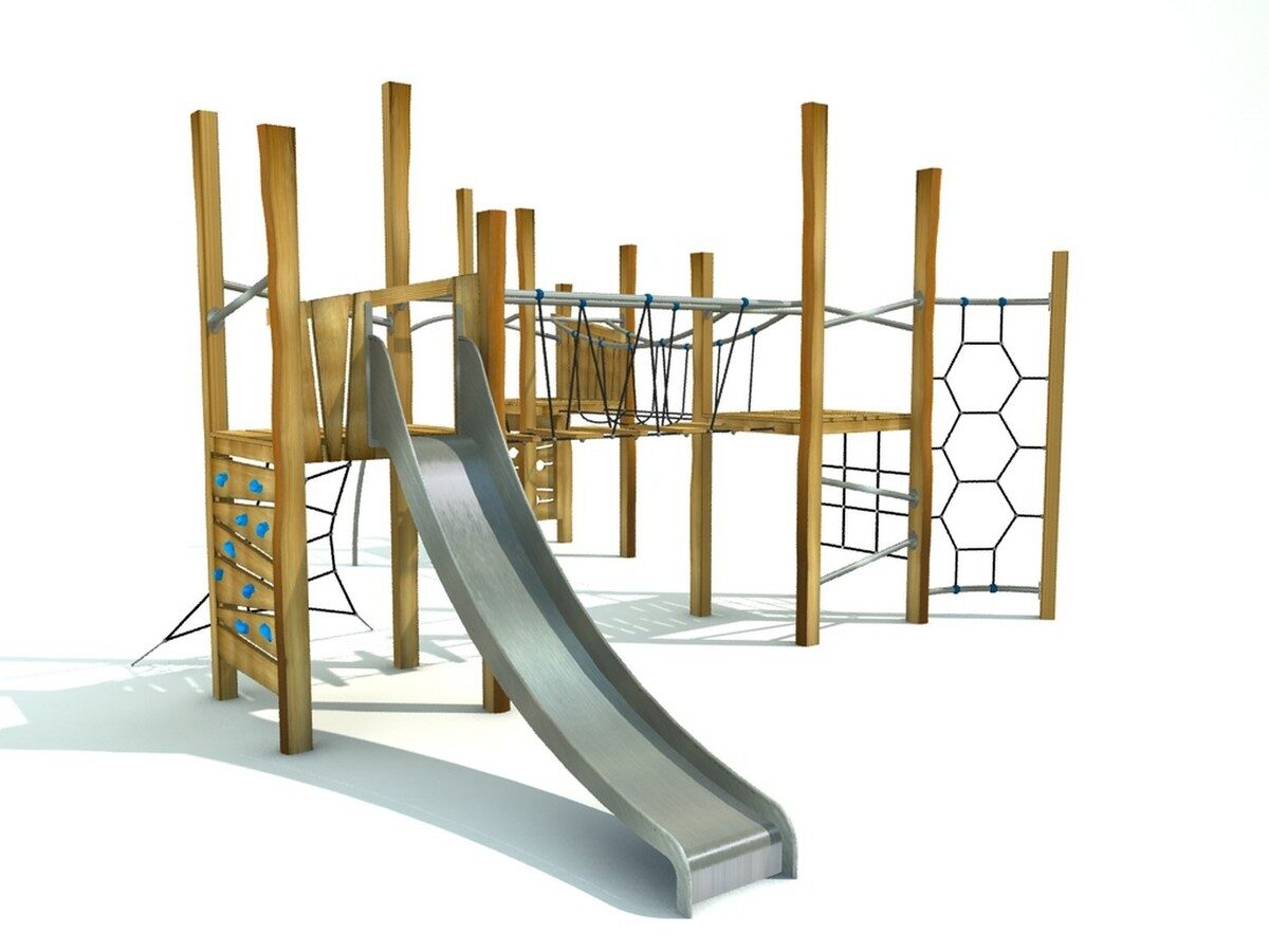 De Rob Roy-serie combineert geschaafd robiniahout met gegalvaniseerd staal voor maximale duurzaamheid en een tijdloze, natuurlijke look. De toestellen zijn ontworpen voor intensief, openbaar gebruik en vragen weinig onderhoud. Met de vele configuraties en uitbreidingen realiseer je voor elke locatie een onderscheidende speelplek met hoge speelwaarde.