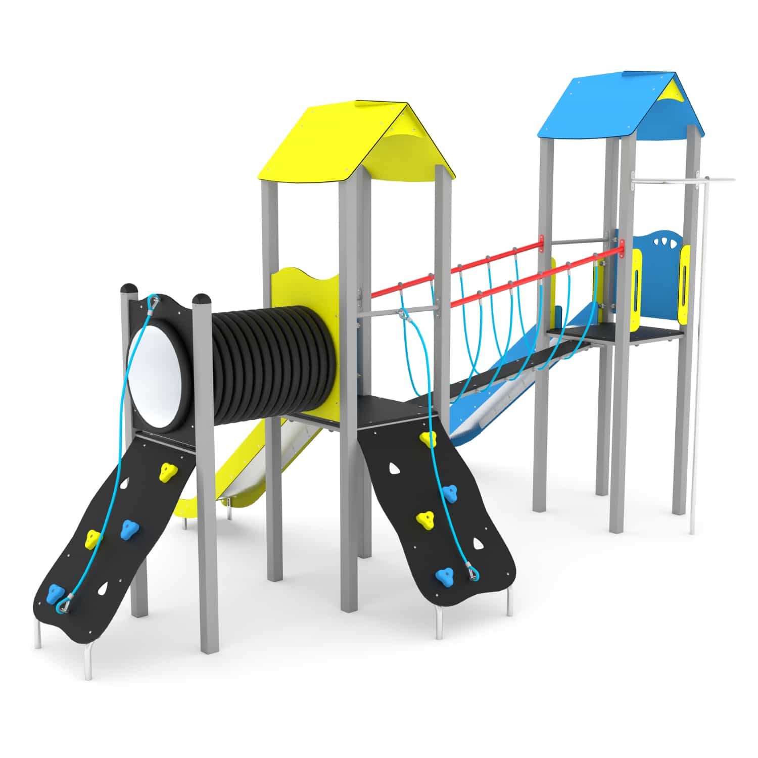 De STEEL-serie bestaat uit klassieke structuren die onbeperkt plezier bieden voor oudere kinderen. De apparatuur uit deze serie kan perfect worden aangepast aan de behoeften van kinderen en de beschikbare ruimte. Rijen van torens verbonden door verschillende aantrekkelijke beweegbare elementen zorgen voor een geweldig oefenterrein voor motorische coördinatie. Ze laten een grote groep kinderen tegelijkertijd spelen, wat helpt om relaties op te bouwen en ook teamwork en gezonde concurrentie leert.