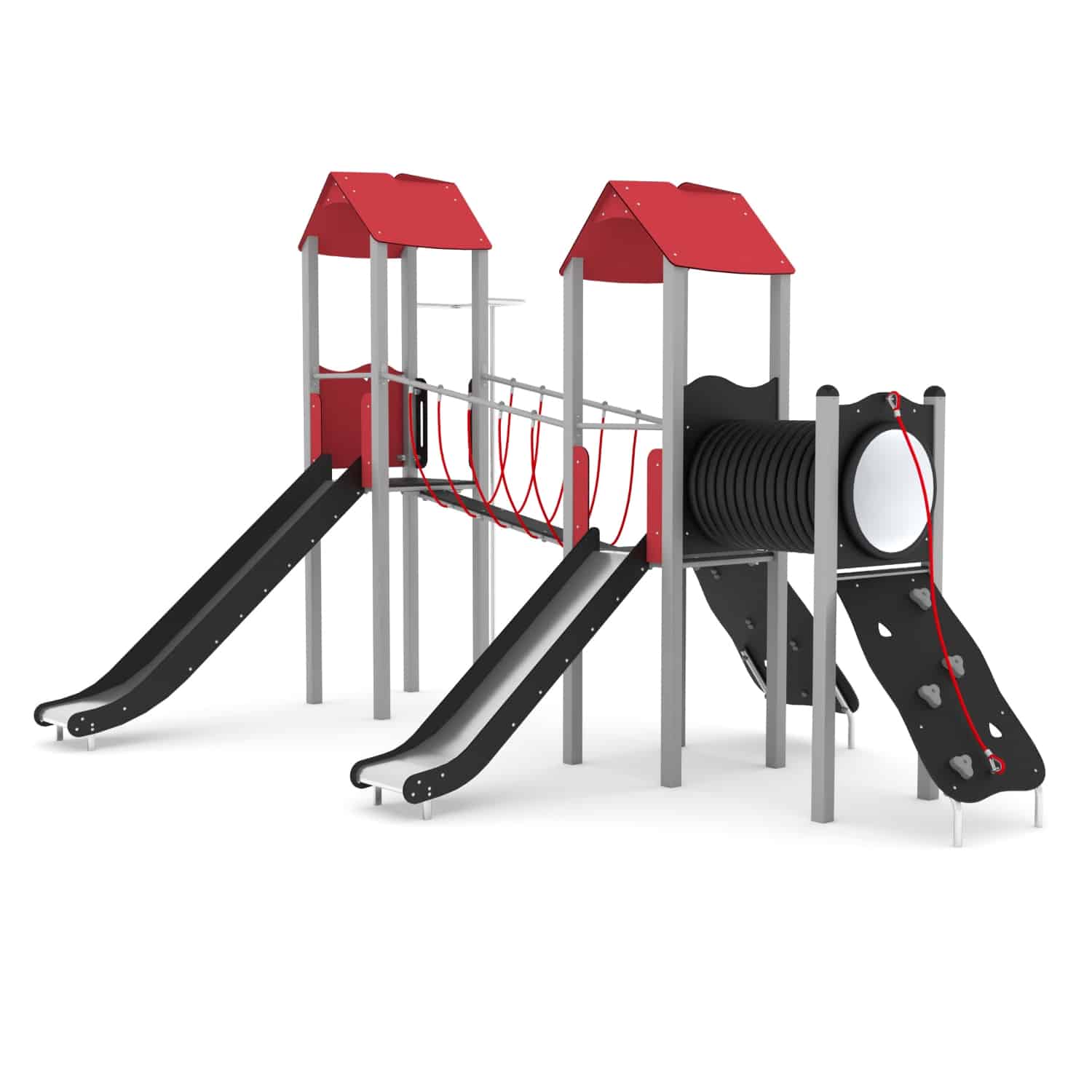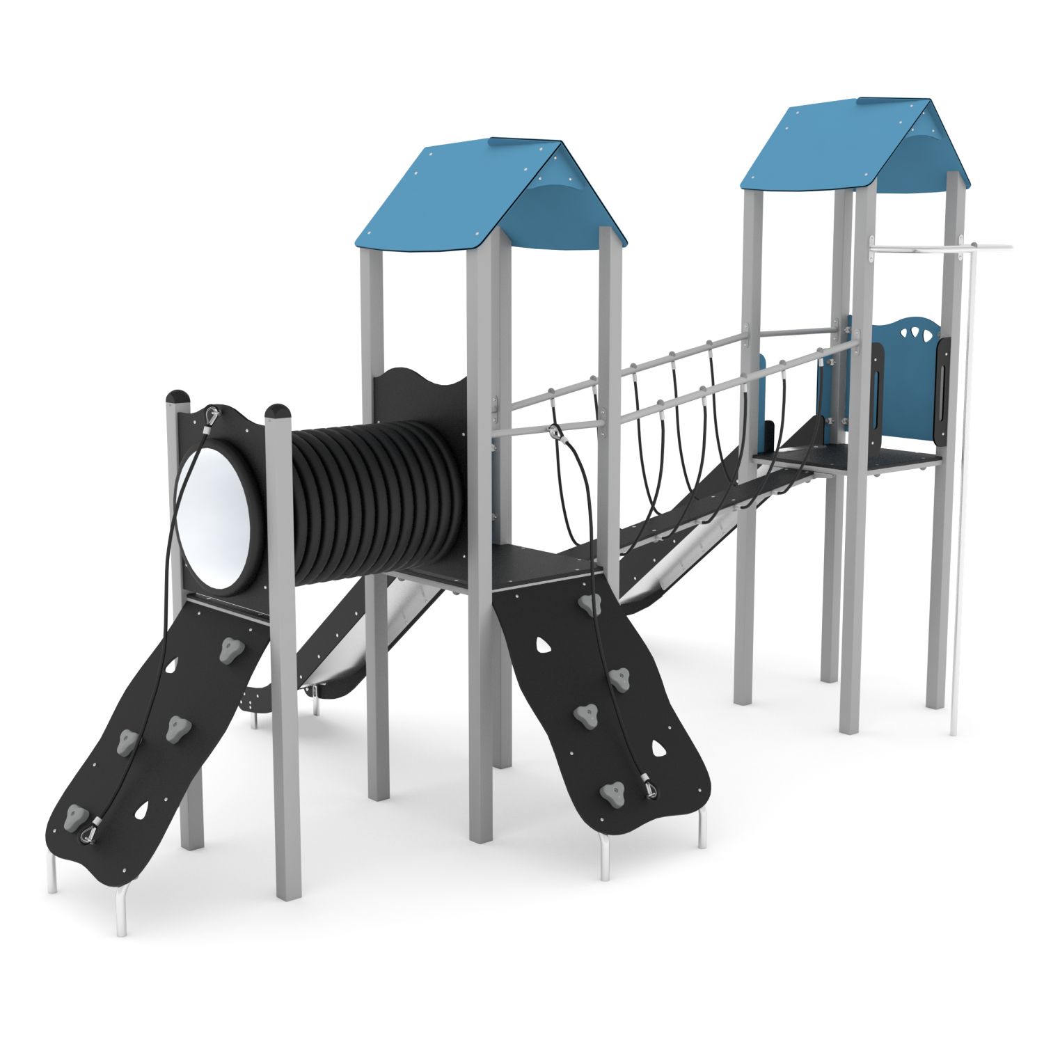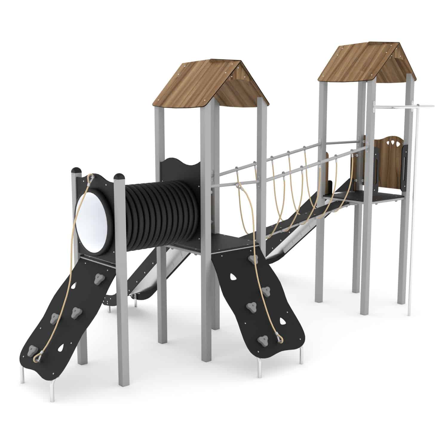 De STEEL-serie bestaat uit klassieke structuren die onbeperkt plezier bieden voor oudere kinderen. De apparatuur uit deze serie kan perfect worden aangepast aan de behoeften van kinderen en de beschikbare ruimte. Rijen van torens verbonden door verschillende aantrekkelijke beweegbare elementen zorgen voor een geweldig oefenterrein voor motorische coördinatie. Ze laten een grote groep kinderen tegelijkertijd spelen, wat helpt om relaties op te bouwen en ook teamwork en gezonde concurrentie leert.