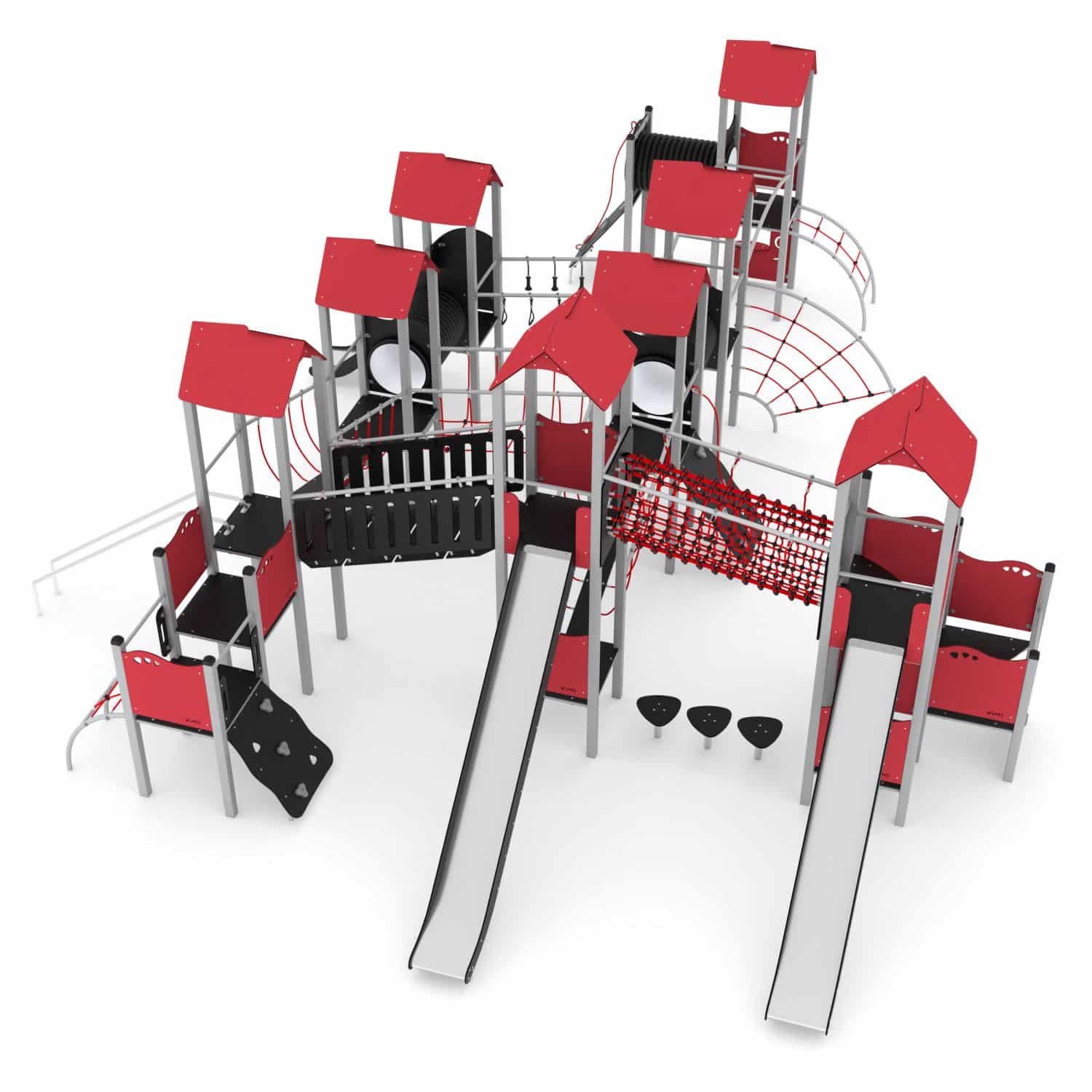 De STEEL-serie bestaat uit klassieke structuren die onbeperkt plezier bieden voor oudere kinderen. De apparatuur uit deze serie kan perfect worden aangepast aan de behoeften van kinderen en de beschikbare ruimte. Rijen van torens verbonden door verschillende aantrekkelijke beweegbare elementen zorgen voor een geweldig oefenterrein voor motorische coördinatie. Ze laten een grote groep kinderen tegelijkertijd spelen, wat helpt om relaties op te bouwen en ook teamwork en gezonde concurrentie leert.