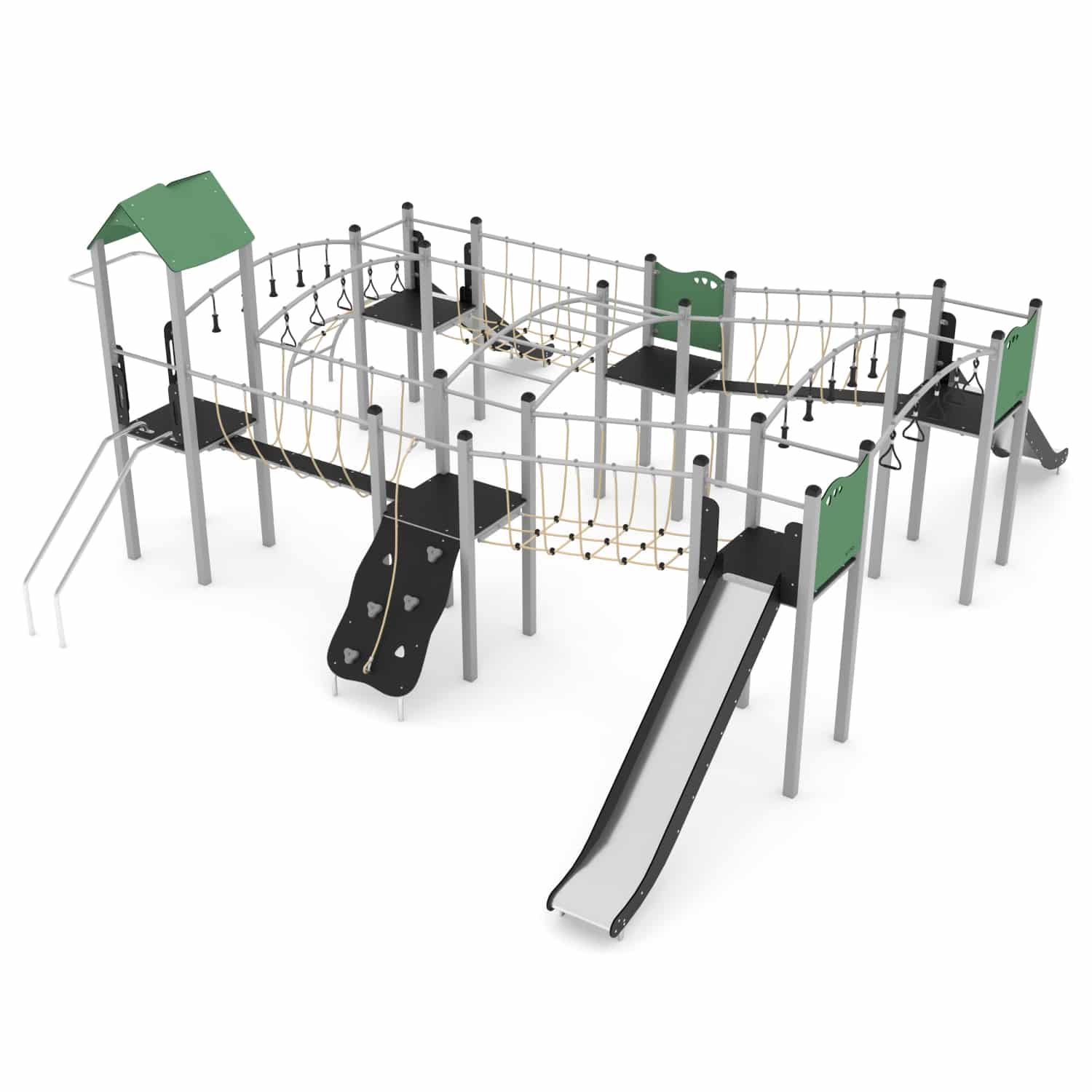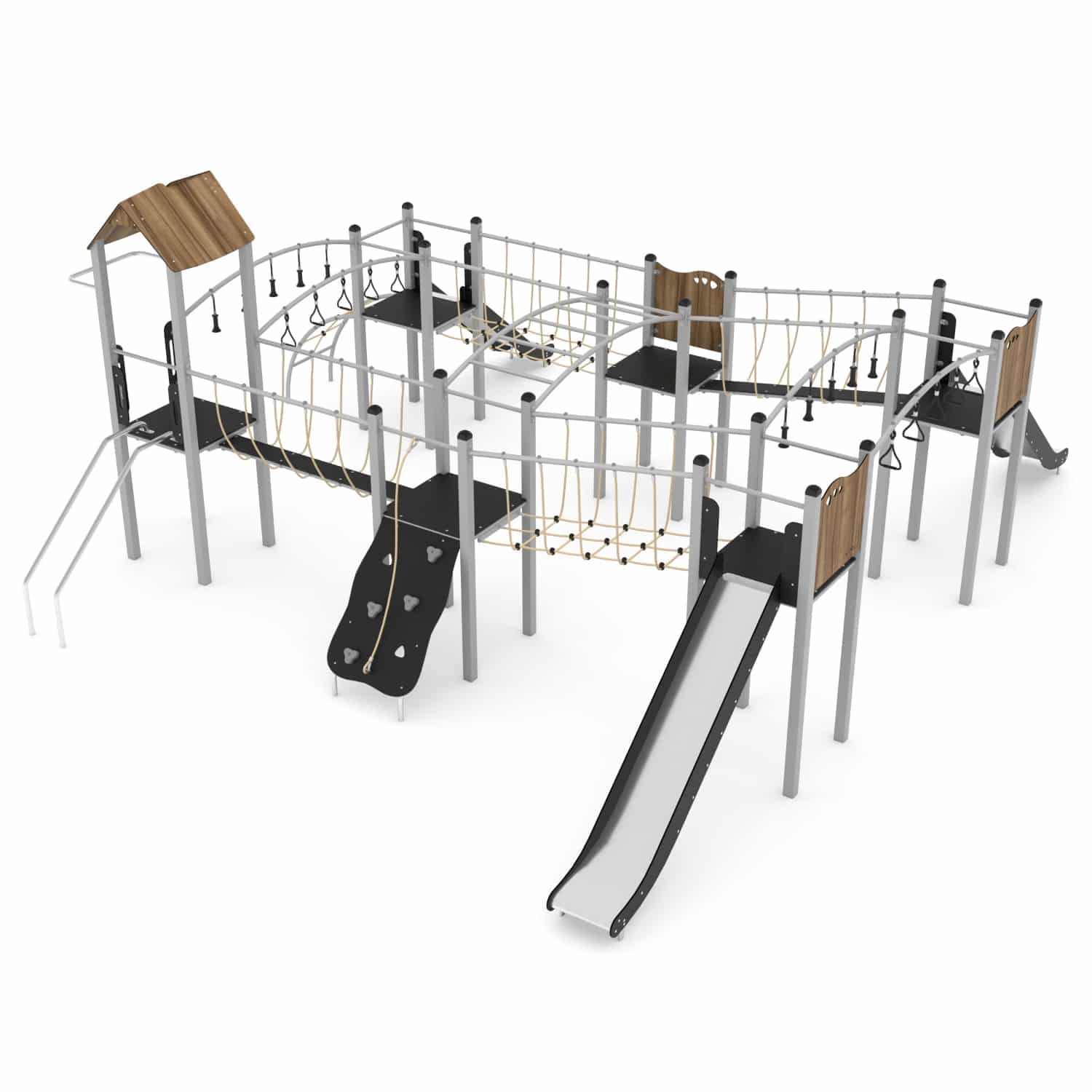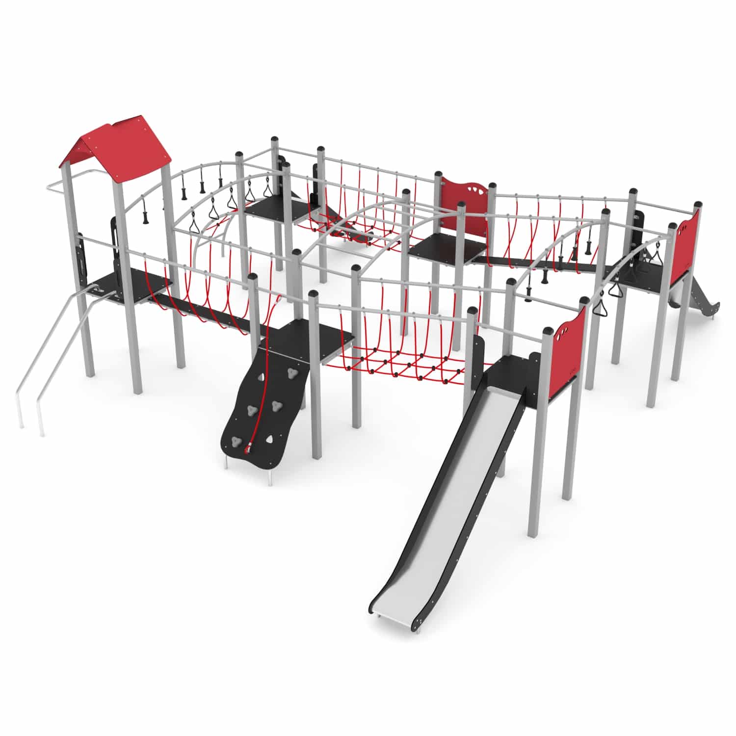 De STEEL-serie bestaat uit klassieke structuren die onbeperkt plezier bieden voor oudere kinderen. De apparatuur uit deze serie kan perfect worden aangepast aan de behoeften van kinderen en de beschikbare ruimte. Rijen van torens verbonden door verschillende aantrekkelijke beweegbare elementen zorgen voor een geweldig oefenterrein voor motorische coördinatie. Ze laten een grote groep kinderen tegelijkertijd spelen, wat helpt om relaties op te bouwen en ook teamwork en gezonde concurrentie leert.