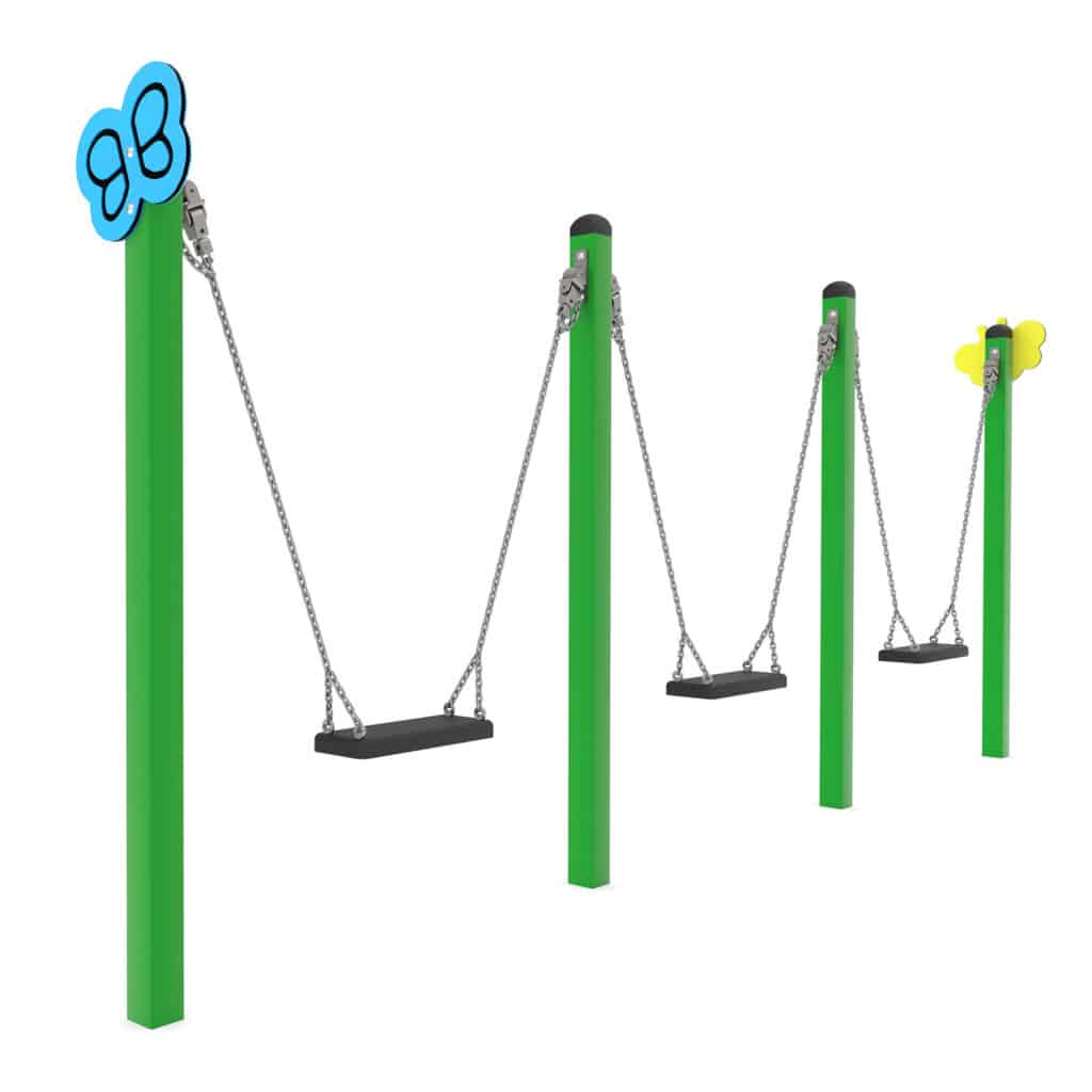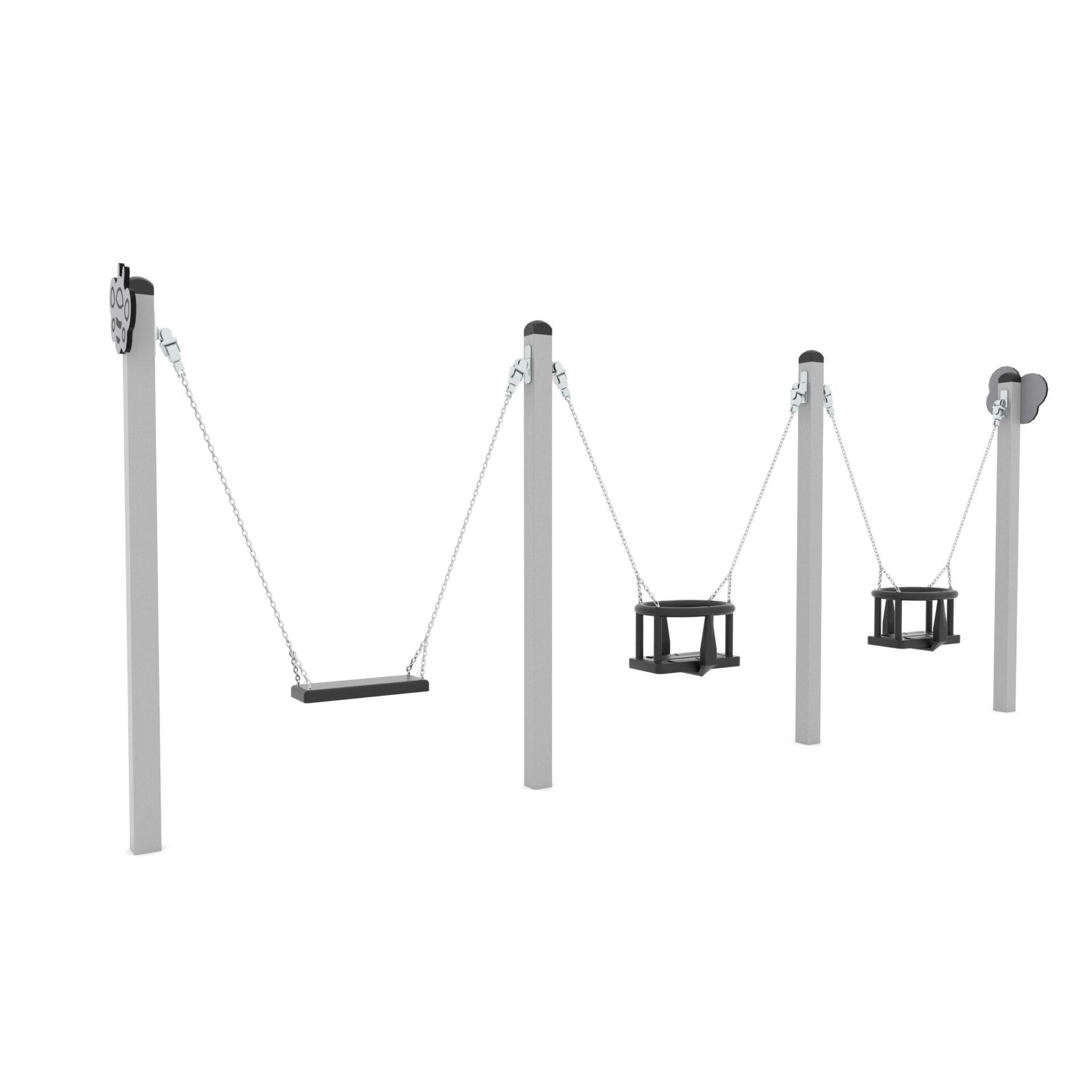 Driedubbele schommel laag met standaard zitje en 2x peuterzitje