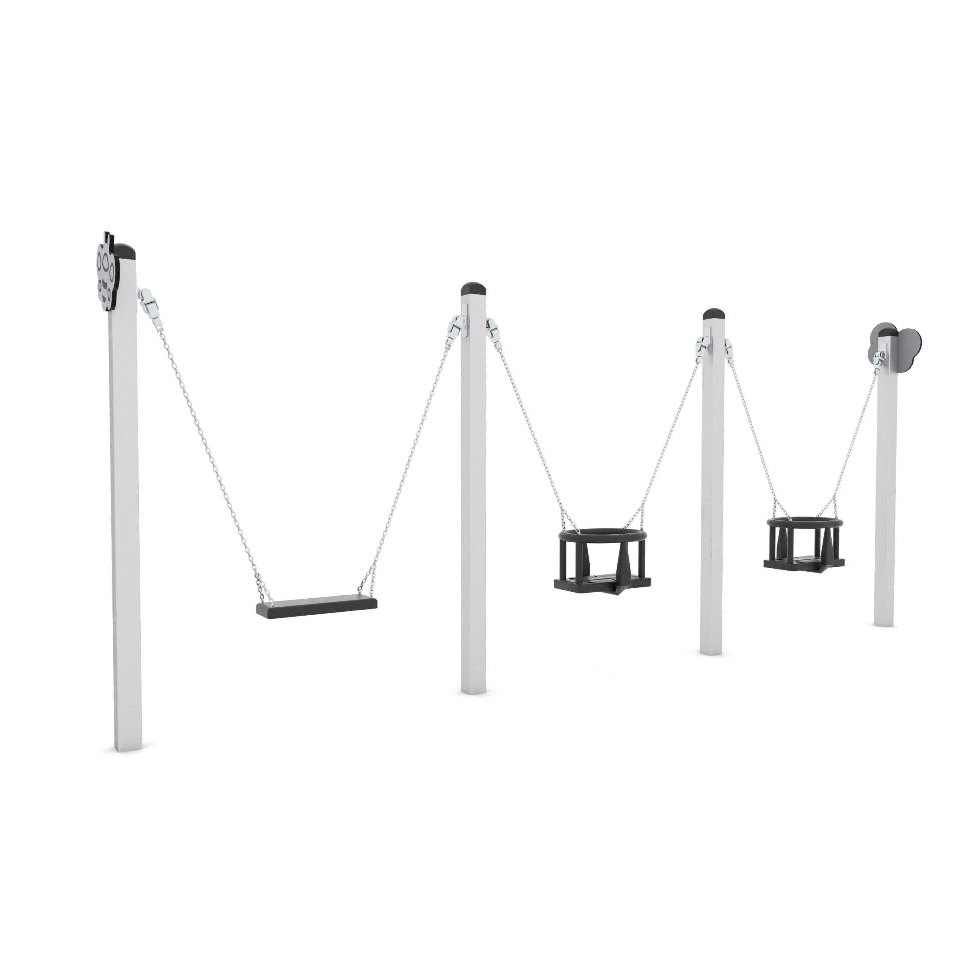 Driedubbele schommel laag met standaard zitje en 2x peuterzitje