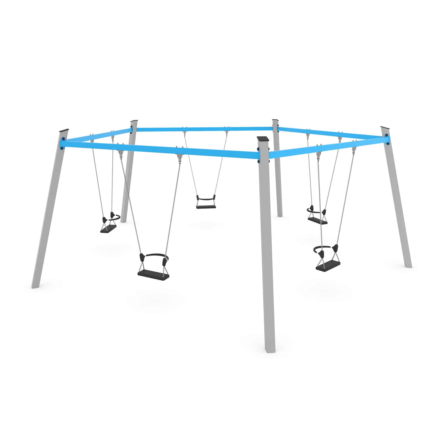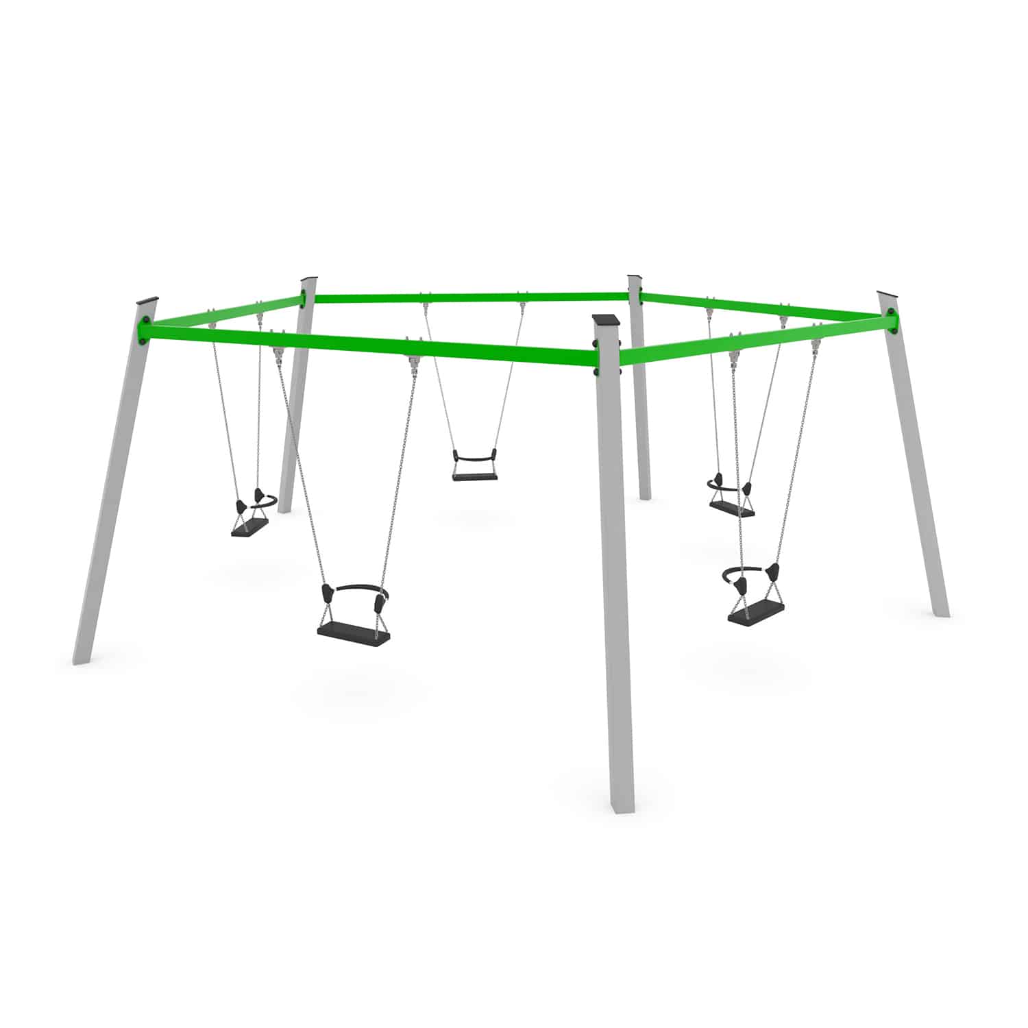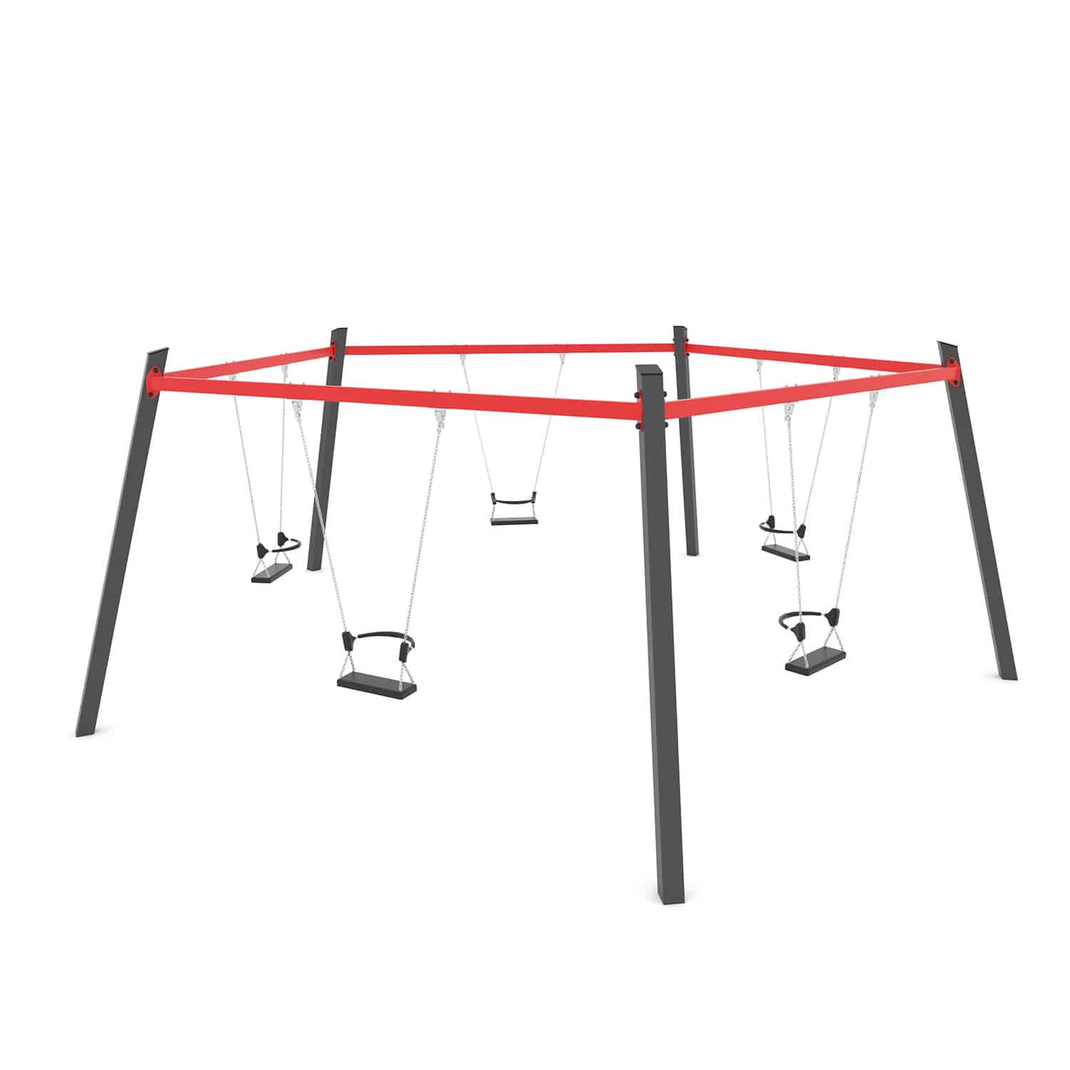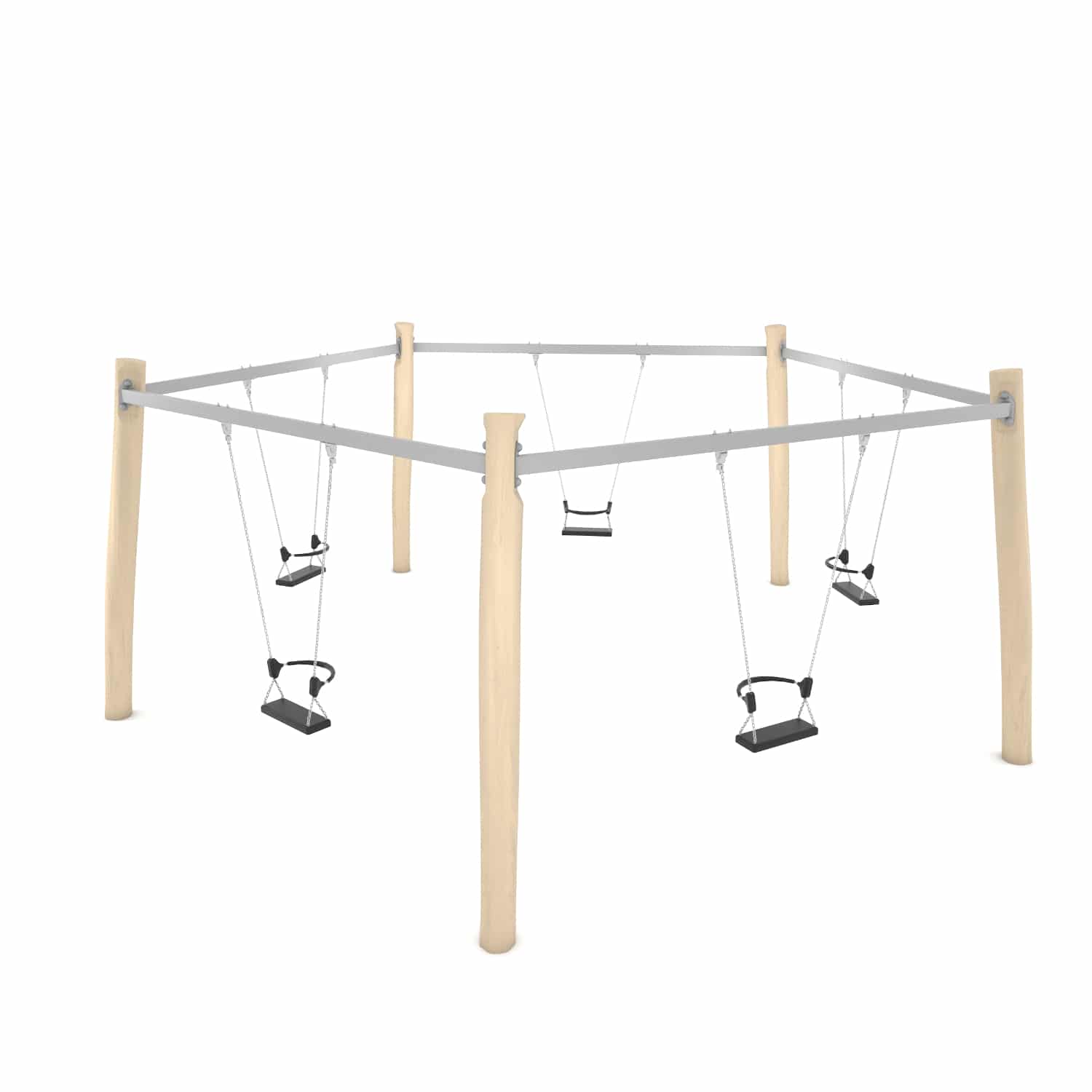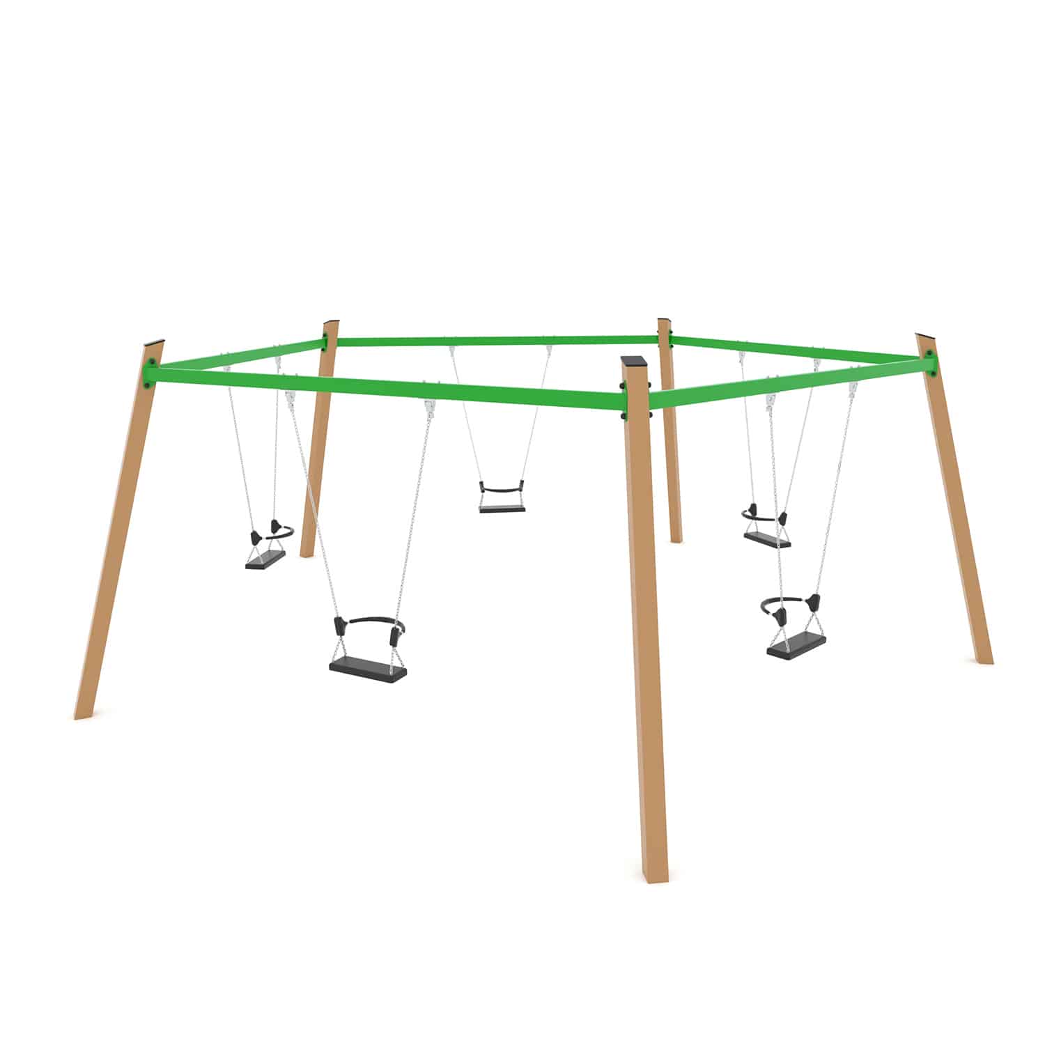Een vijfvoudige schommel is een groot succes op een speelplek als de ruimte het toelaat. Samen met je vrienden, ouders of misschien wel met opa of oma.