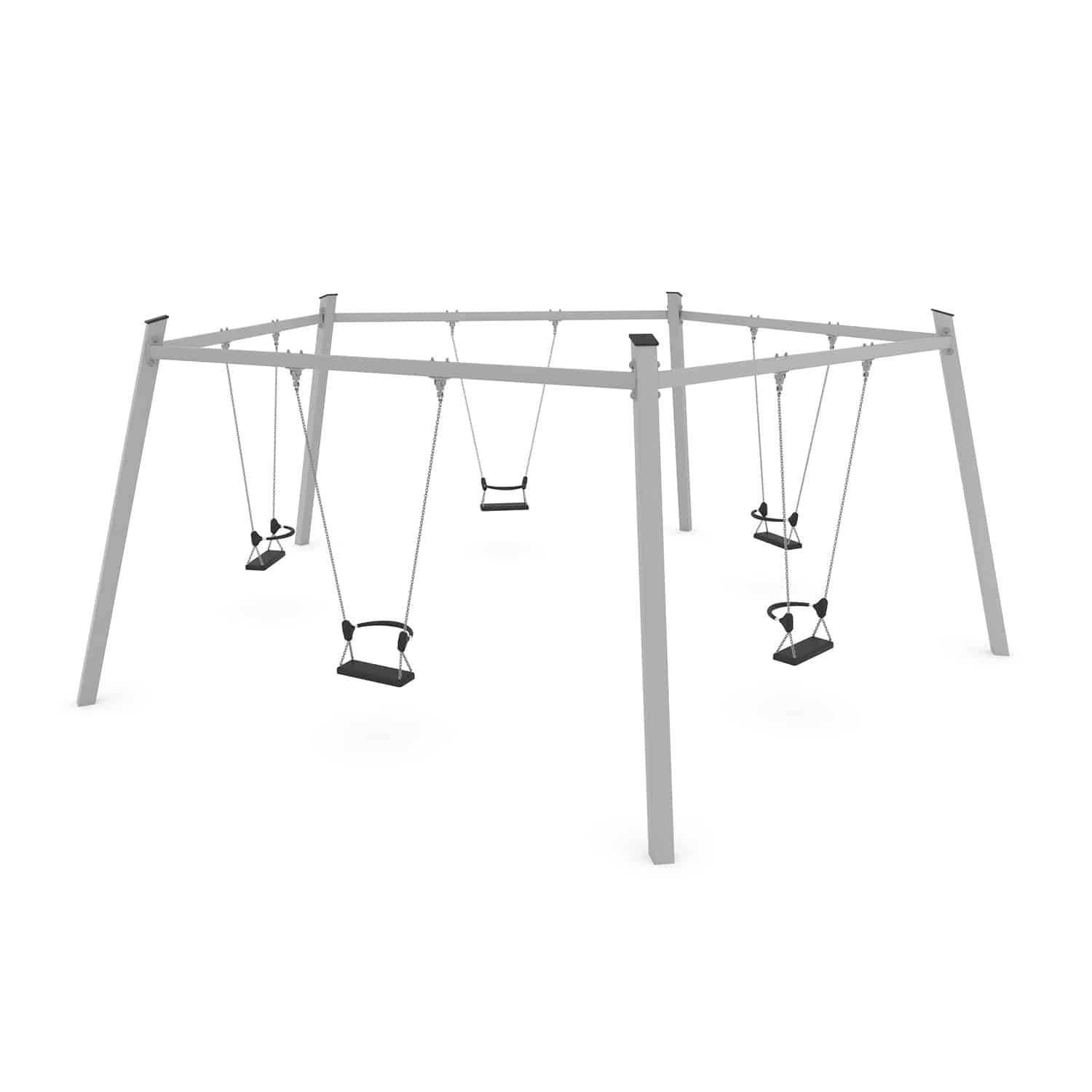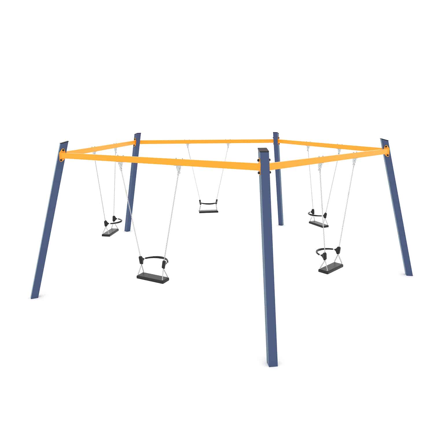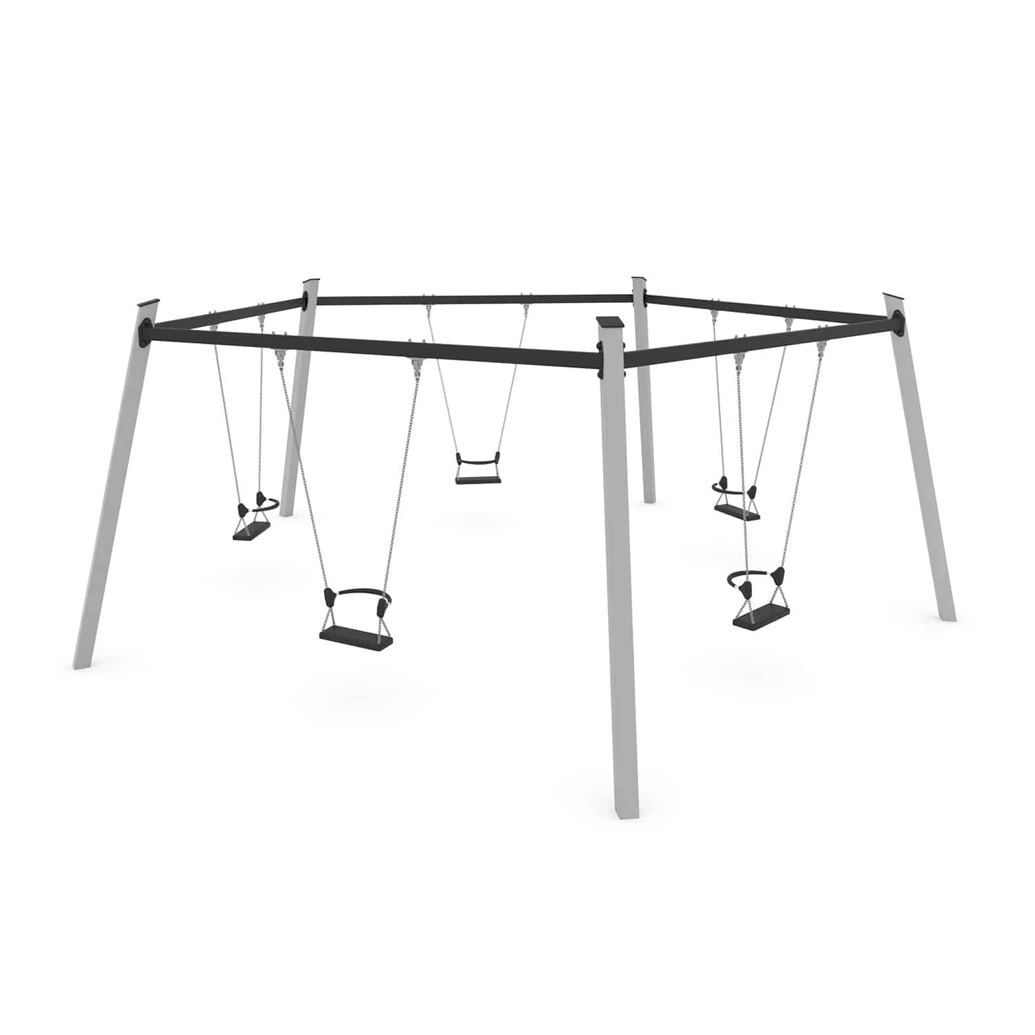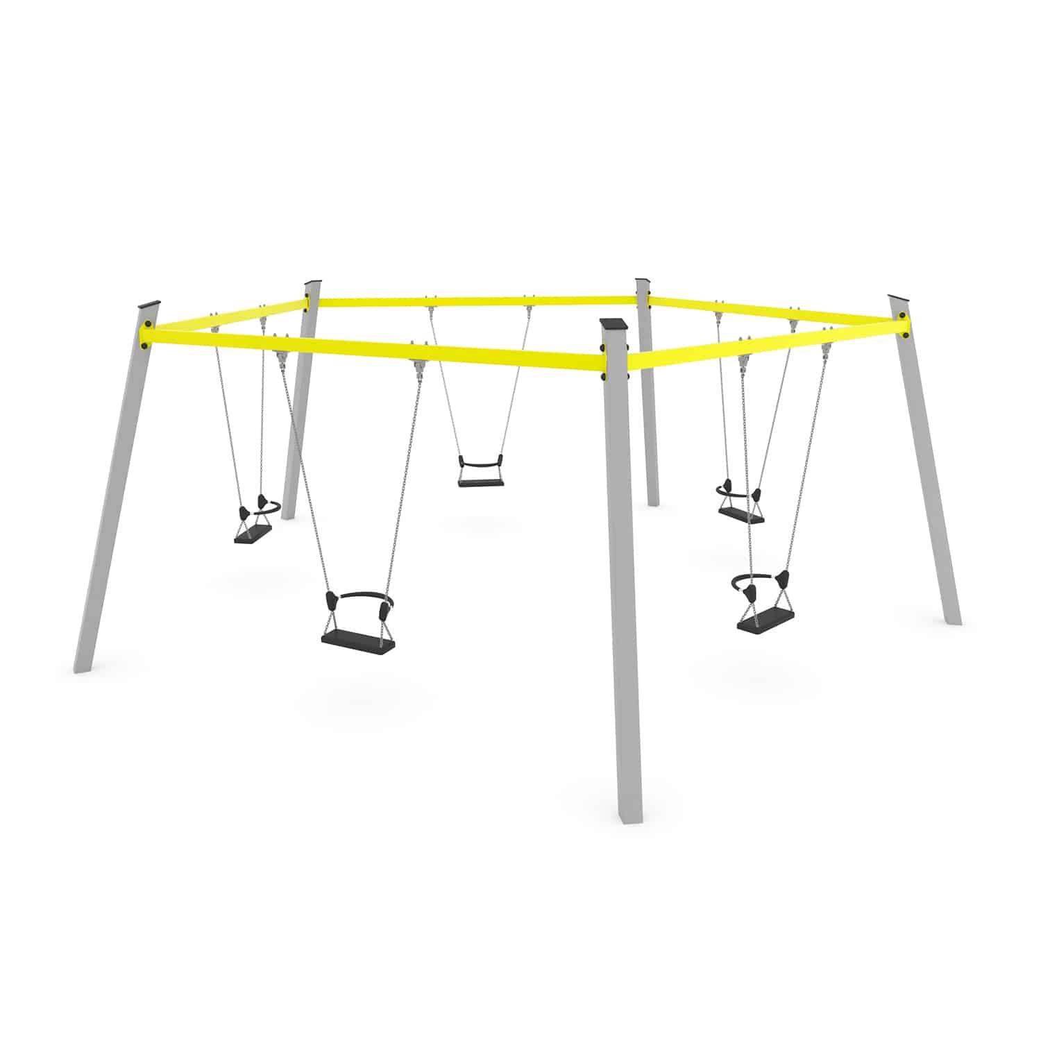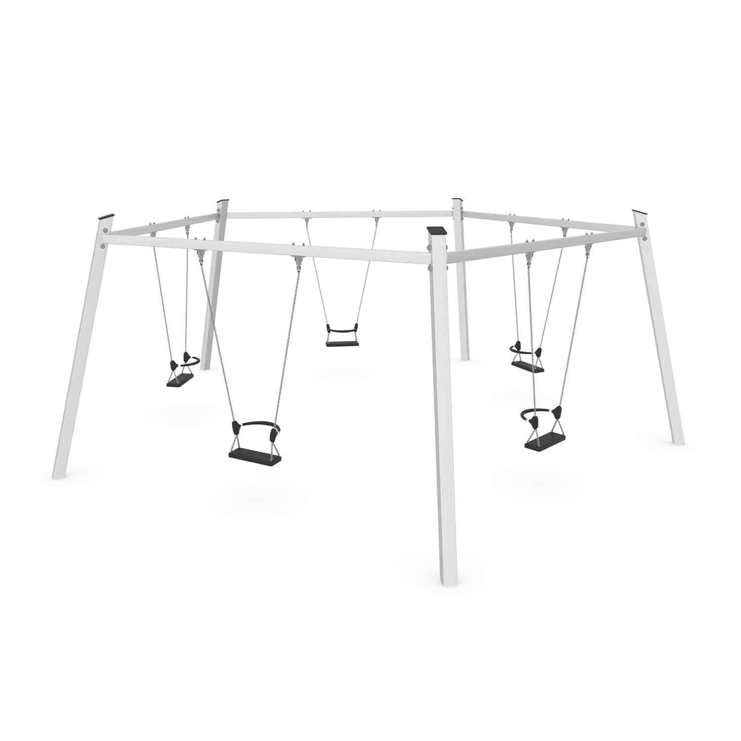 Een vijfvoudige schommel is een groot succes op een speelplek als de ruimte het toelaat. Samen met je vrienden, ouders of misschien wel met opa of oma.