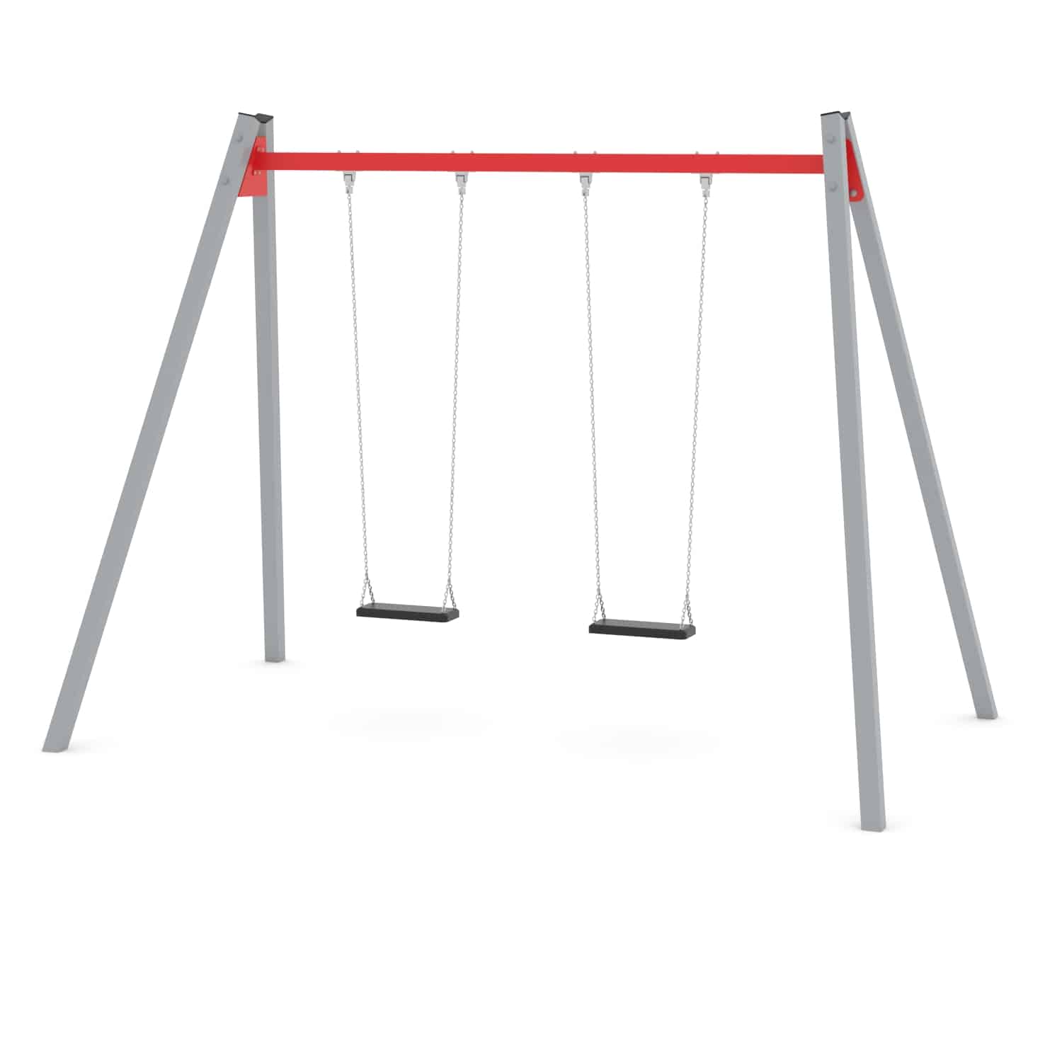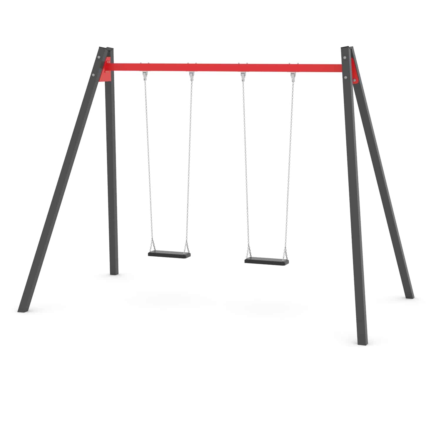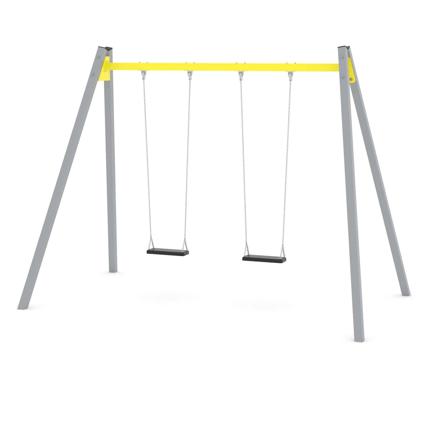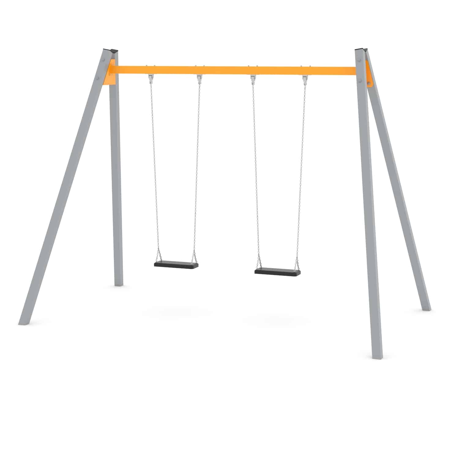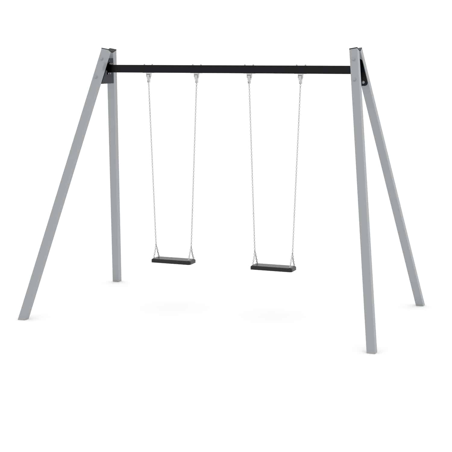 Strak vormgegeven dubbele schommel waarbij optioneel voor andere zitjes gekozen kan worden.
