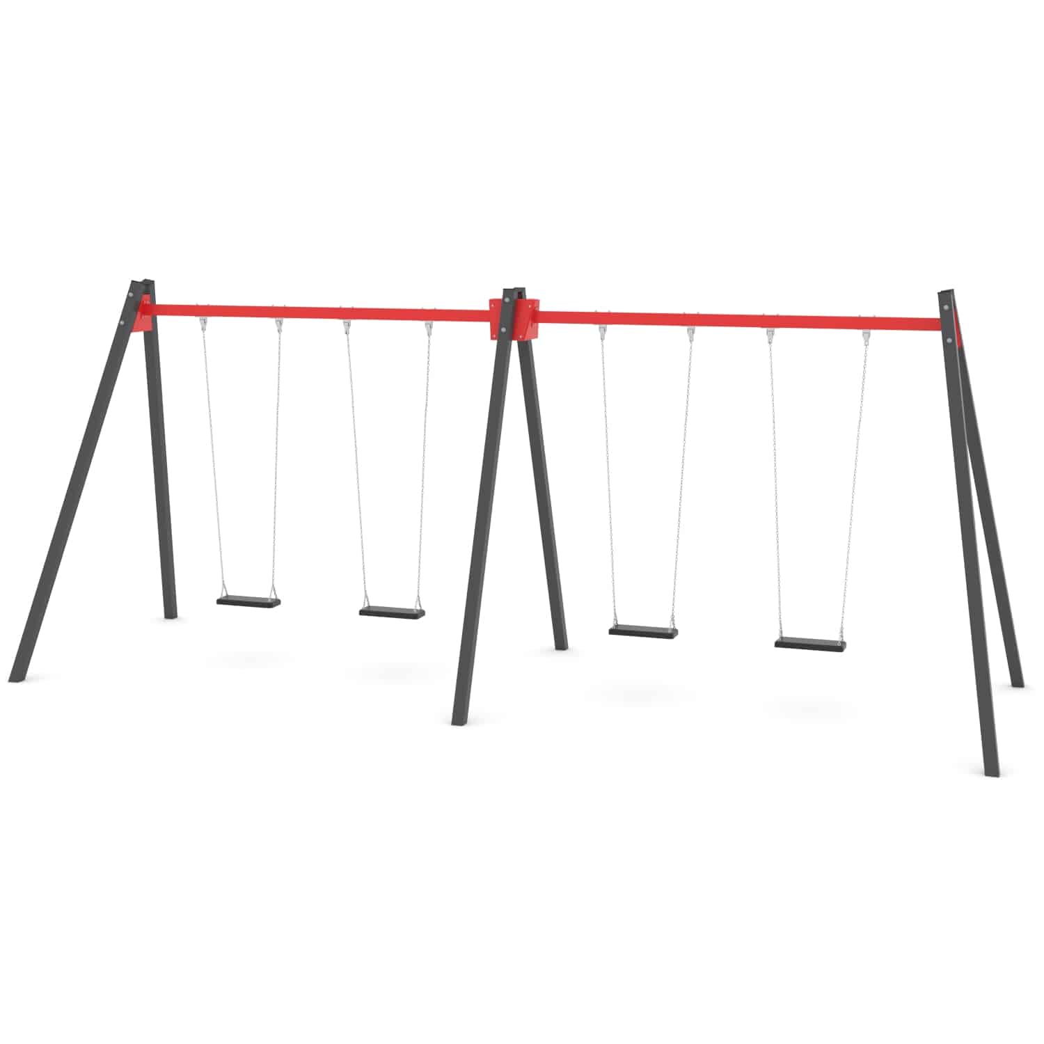 Strak vormgegeven Viervoudige schommel waarbij optioneel voor andere zitjes gekozen kan worden.