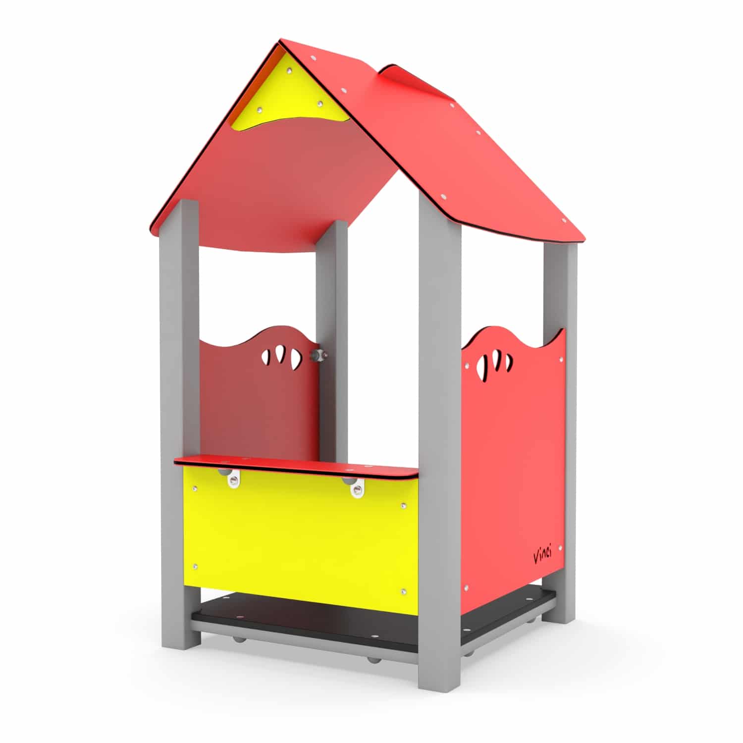 Voor speeltuinen met een meer natuurlijke uitstraling kunt u deze toestellen ook in HPL versie krijgen met bv groene of houtnerf panelen.  Dit speelhuis is gemakkelijk en snel zelf te plaatsen.